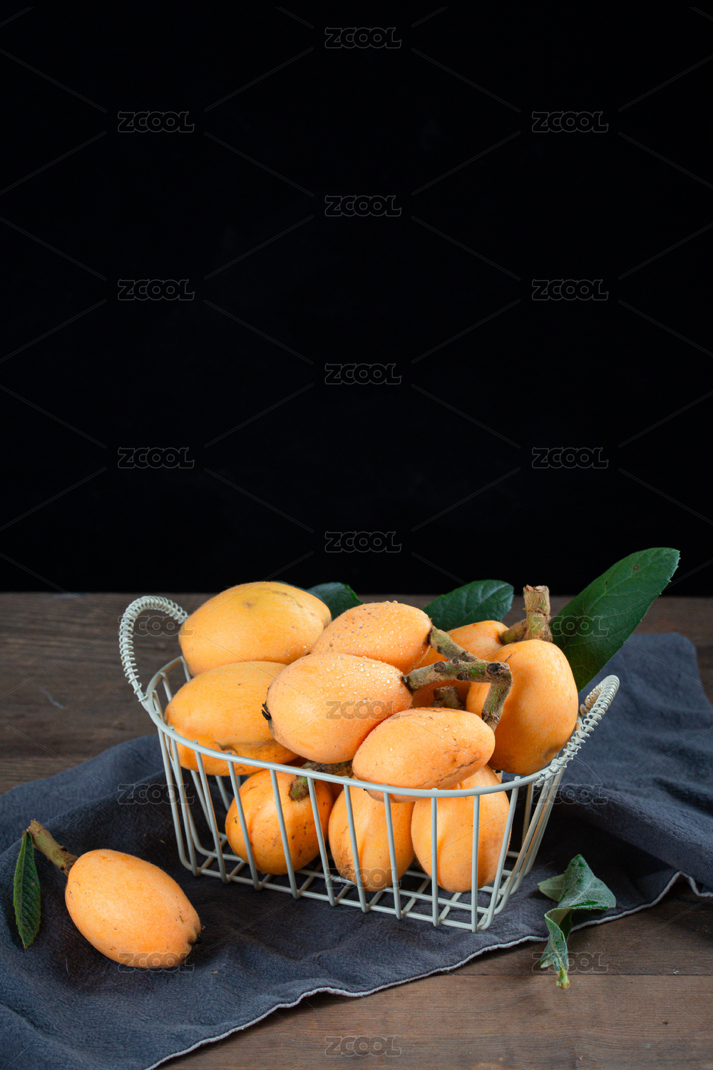 棚拍暗調(diào)木桌上的新鮮水果枇杷