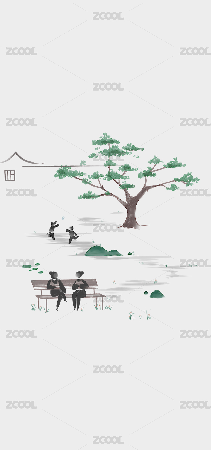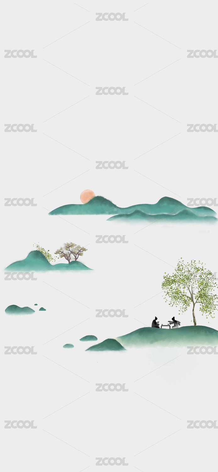 古風(fēng)淡雅山水山居風(fēng)景圖