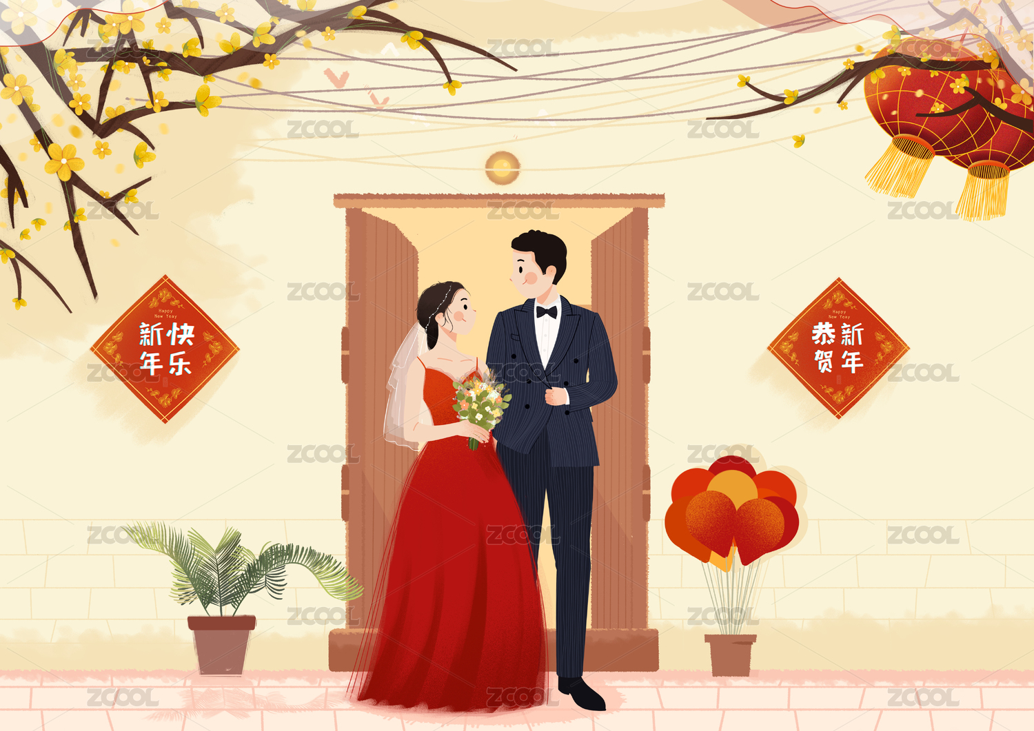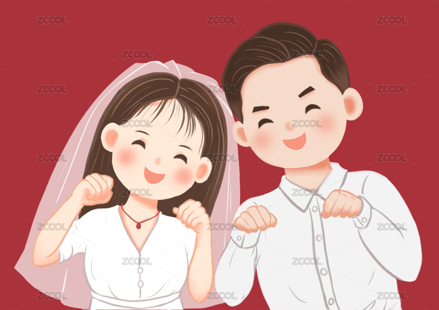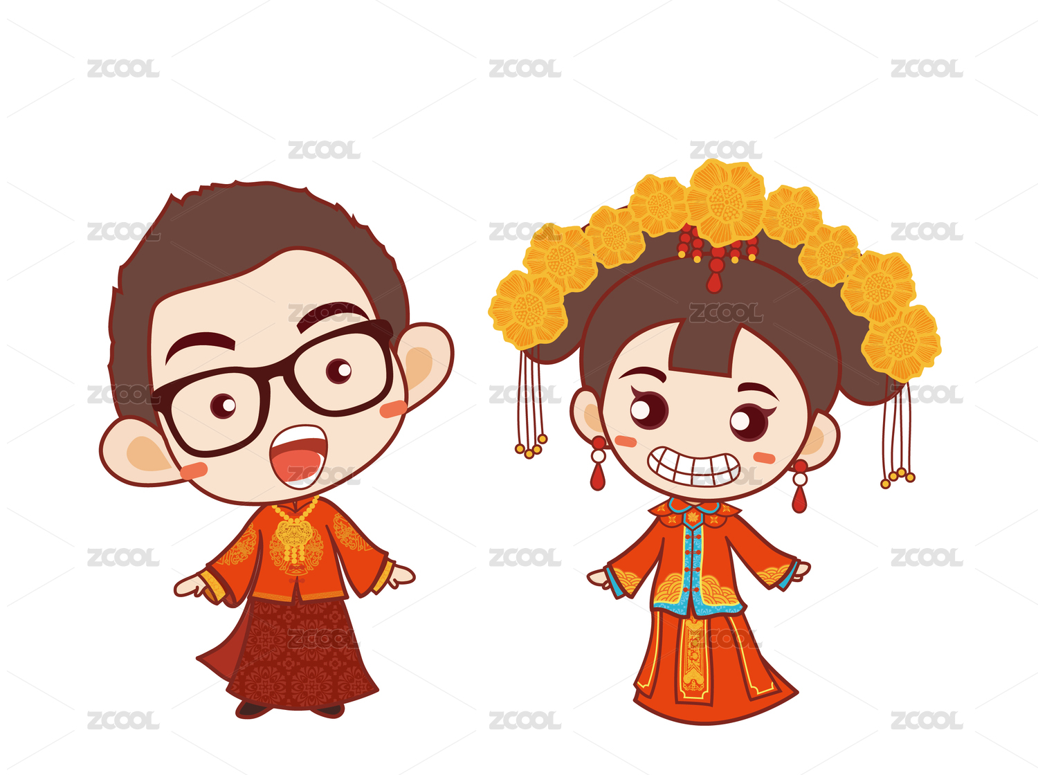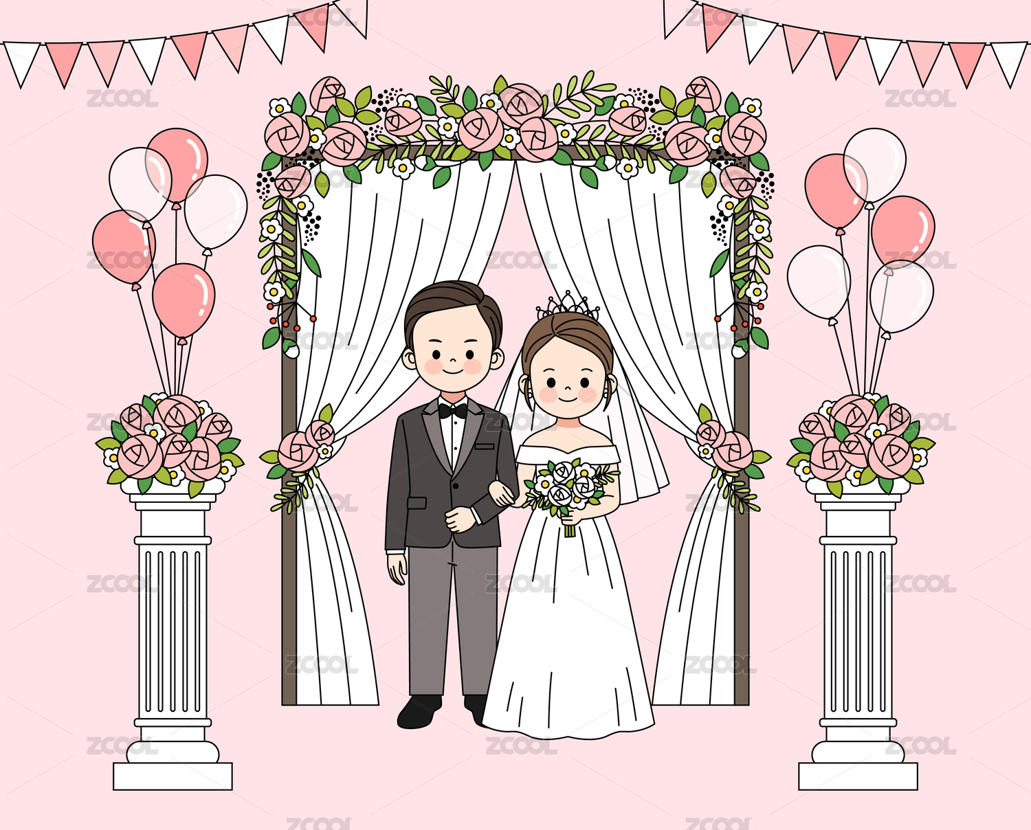 一對卡通新人婚禮插畫