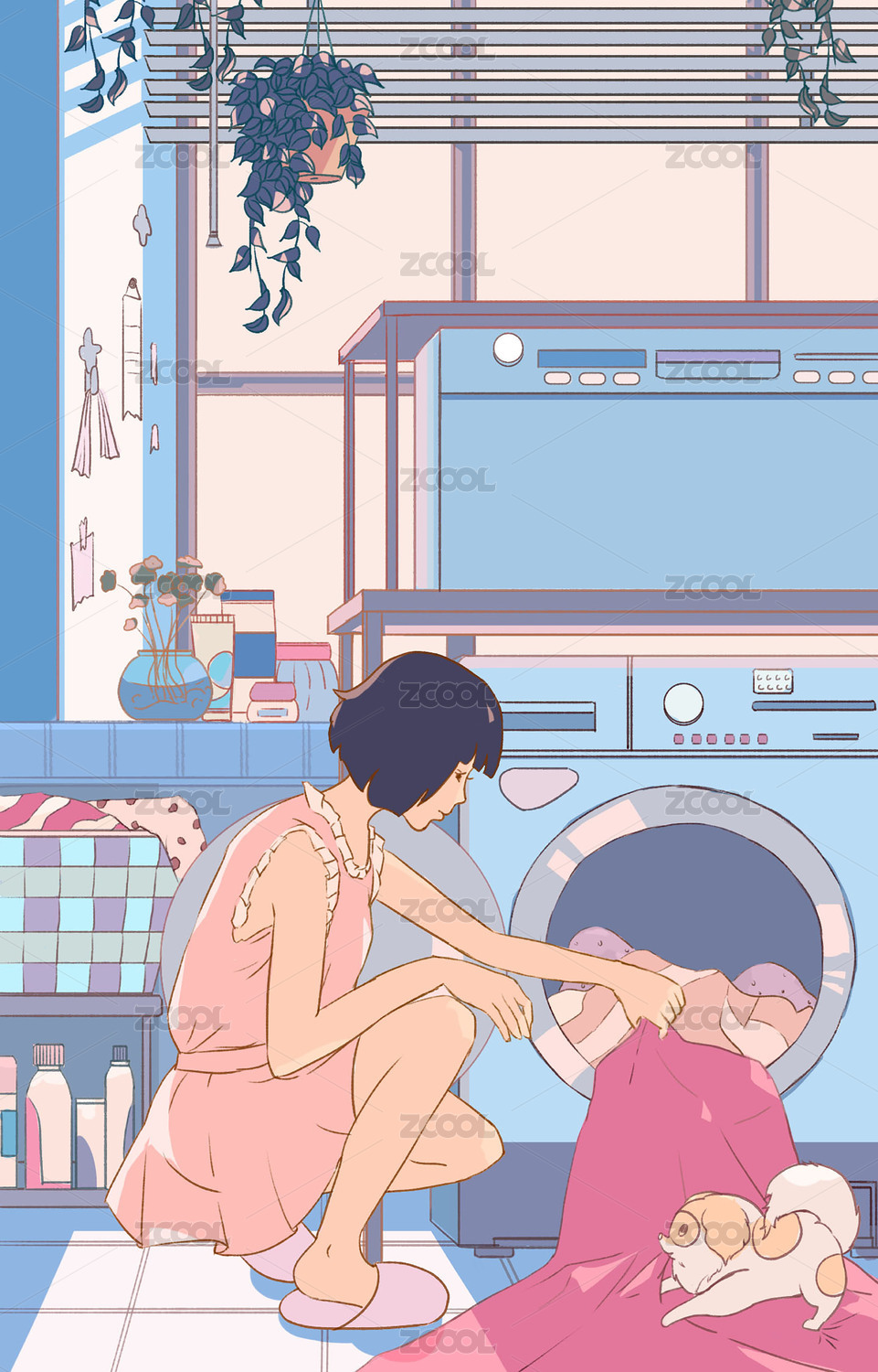夏季日系小清新人物日常生活室內(nèi)插畫