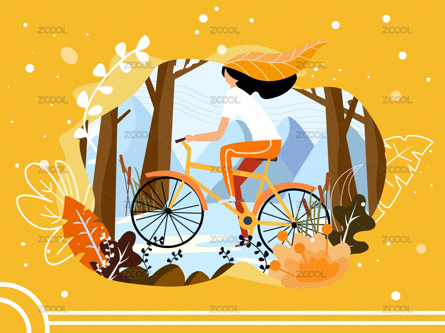 小清新人物騎自行車郊外插畫