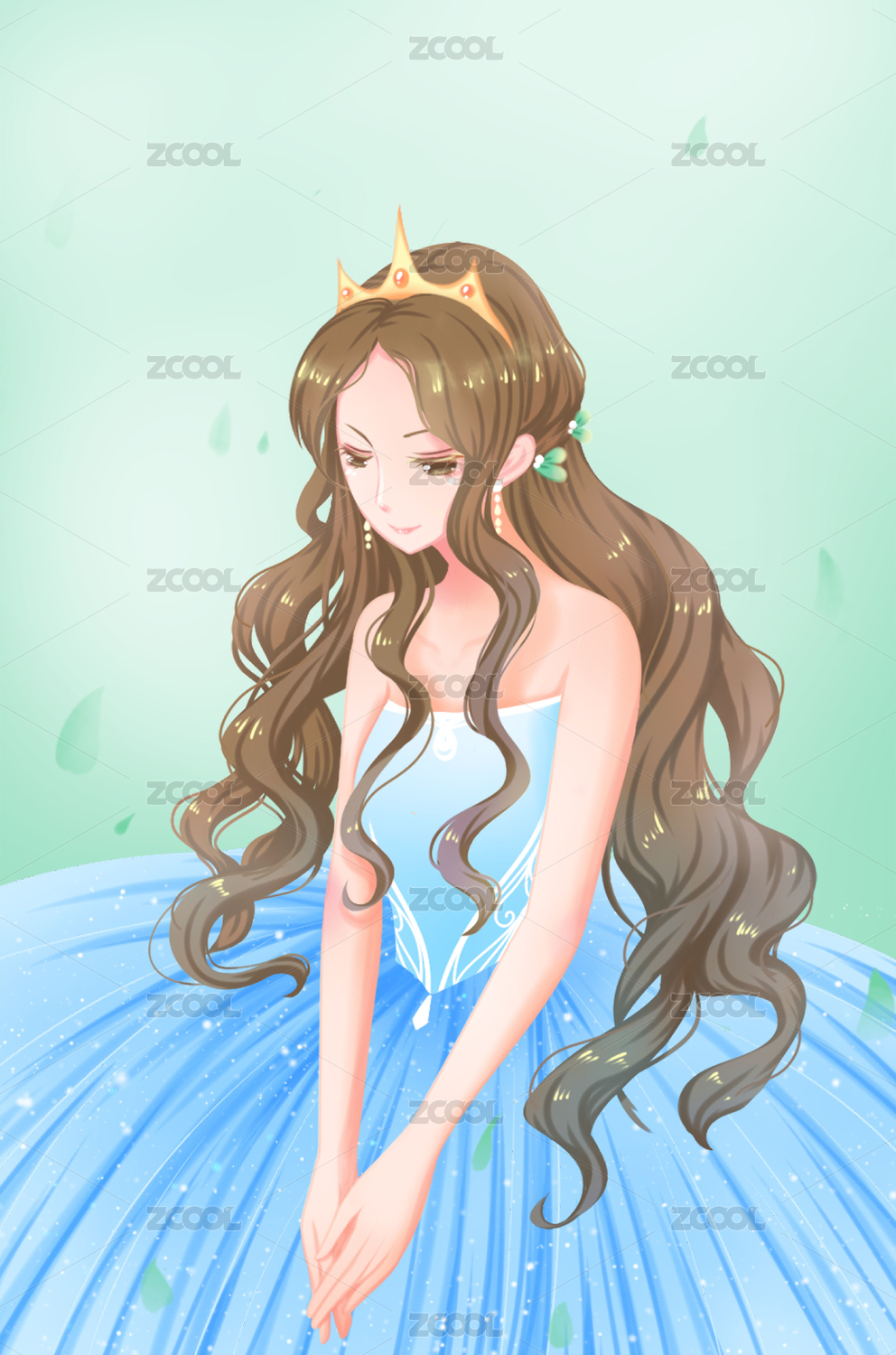 美麗的波浪長發(fā)女人,唯美卡通清新人物插畫