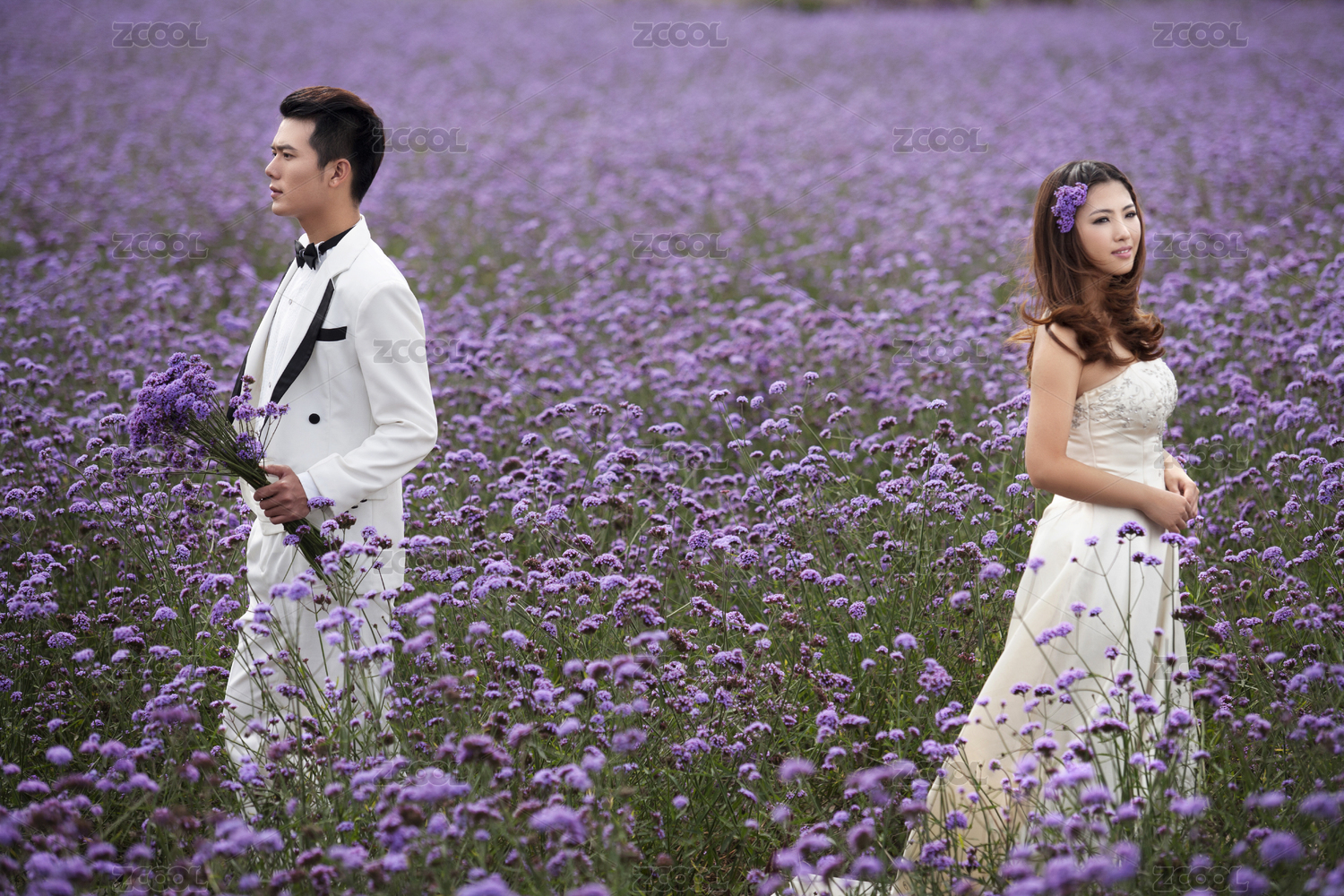 一對新人抱著花束