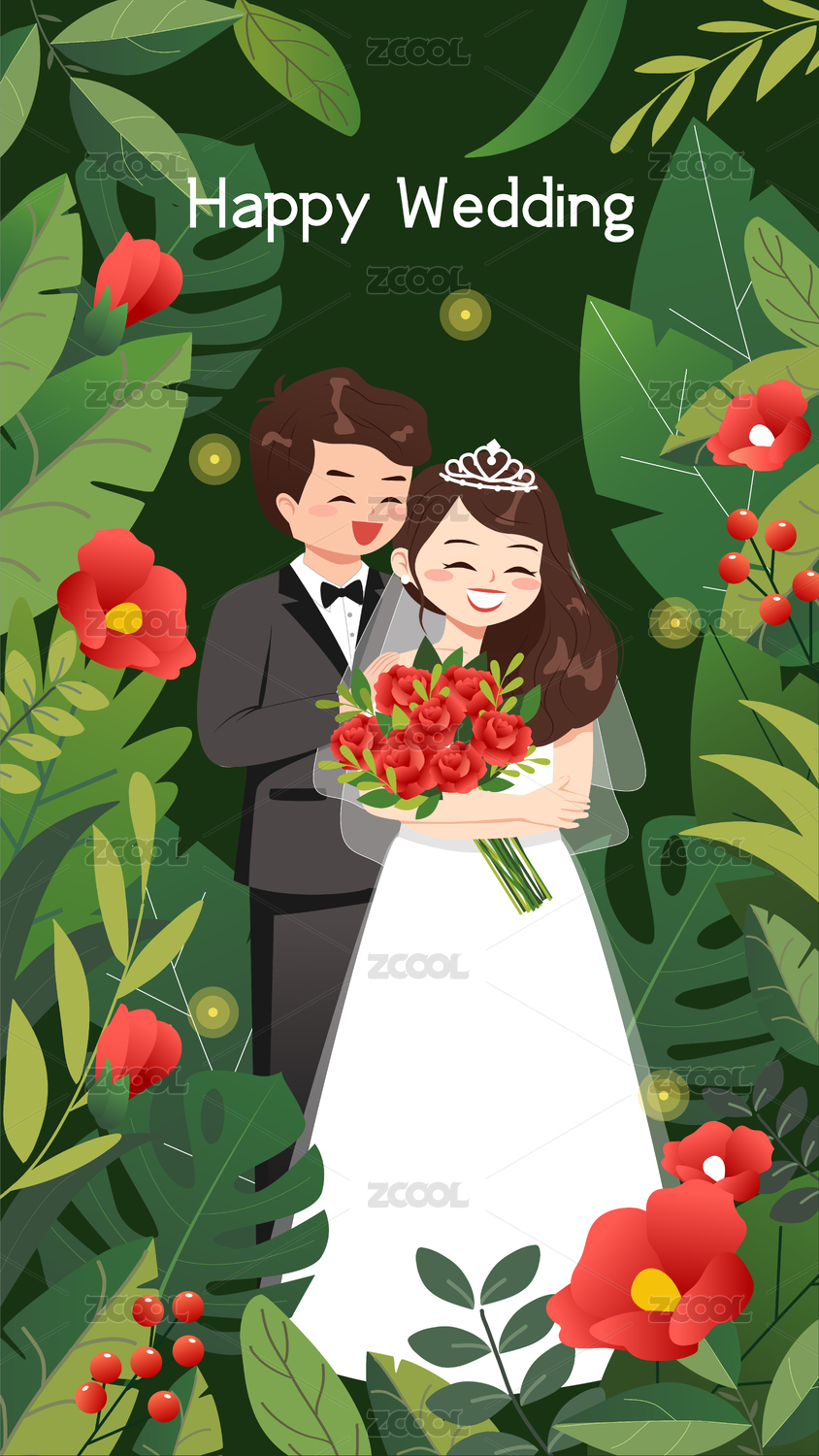 幸福的一對新人卡通插畫
