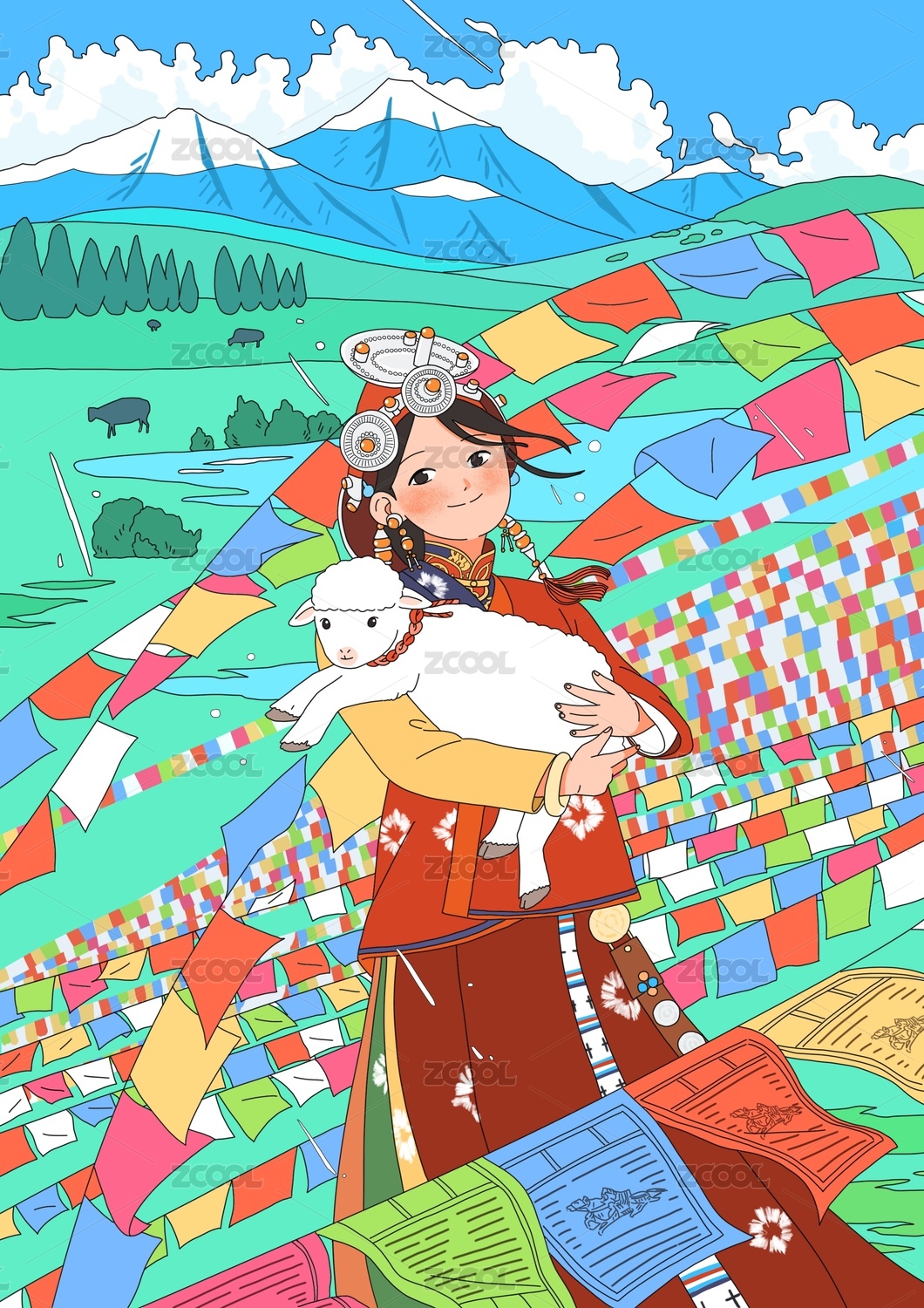 清新人物風(fēng)景勾線場景插畫