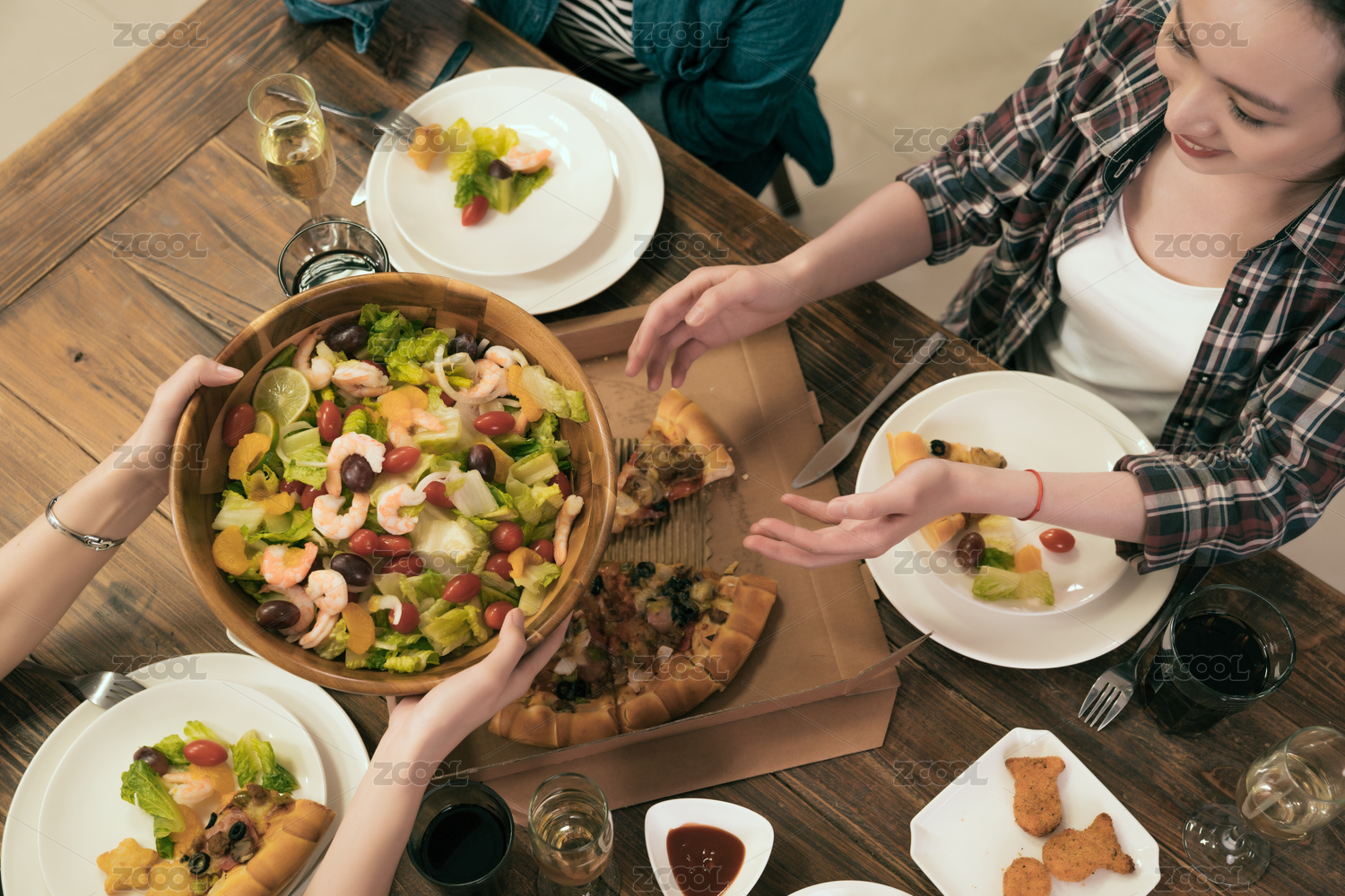 以上觀點(diǎn)快樂朋友享受共進(jìn)晚餐,并通過沙拉給對方。