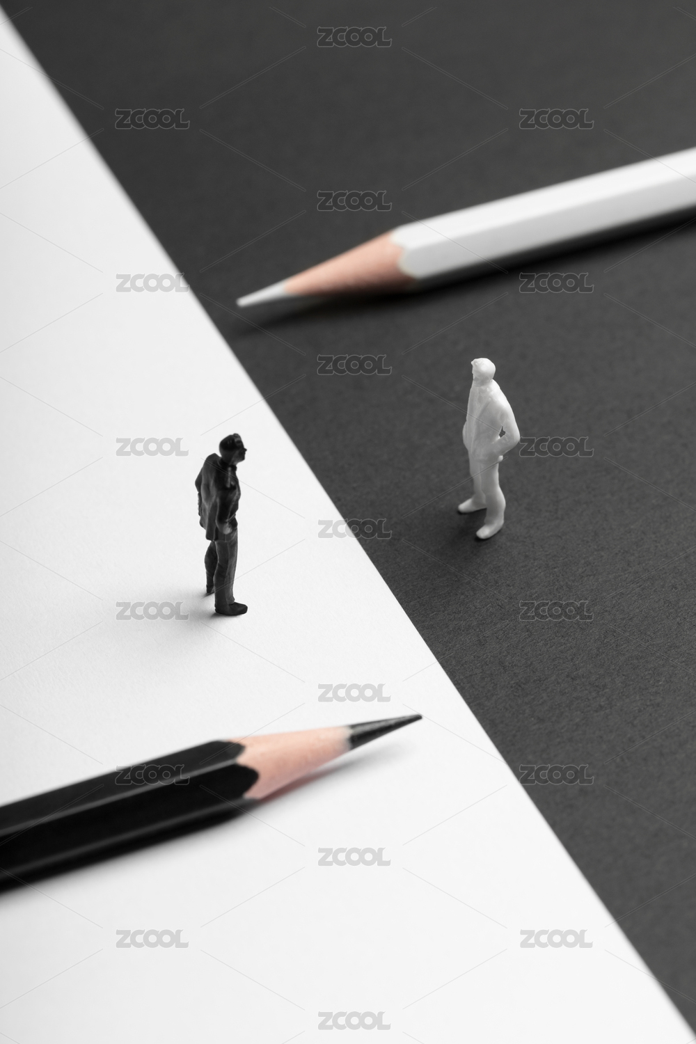 微縮創(chuàng)意黑白鉛筆與觀點(diǎn)對立的人