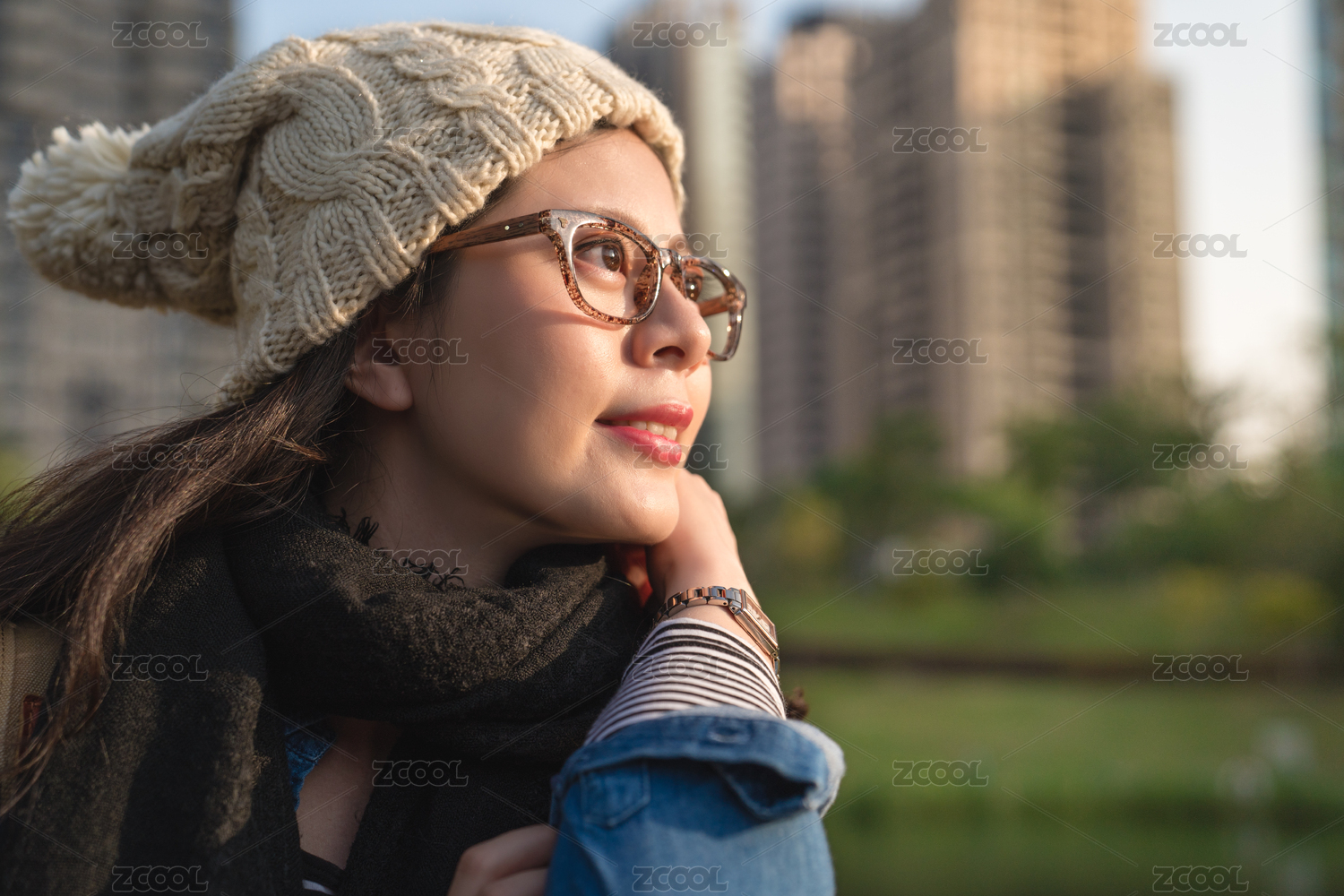 迷人的女學(xué)生享有城市觀點(diǎn)和愛晴朗的天氣在冬季。