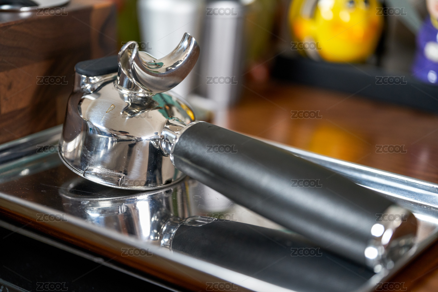 意式濃縮咖啡機(jī)使用的泡咖啡器具特寫