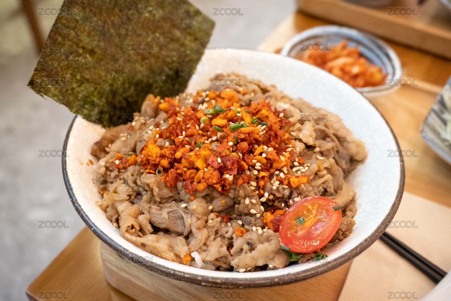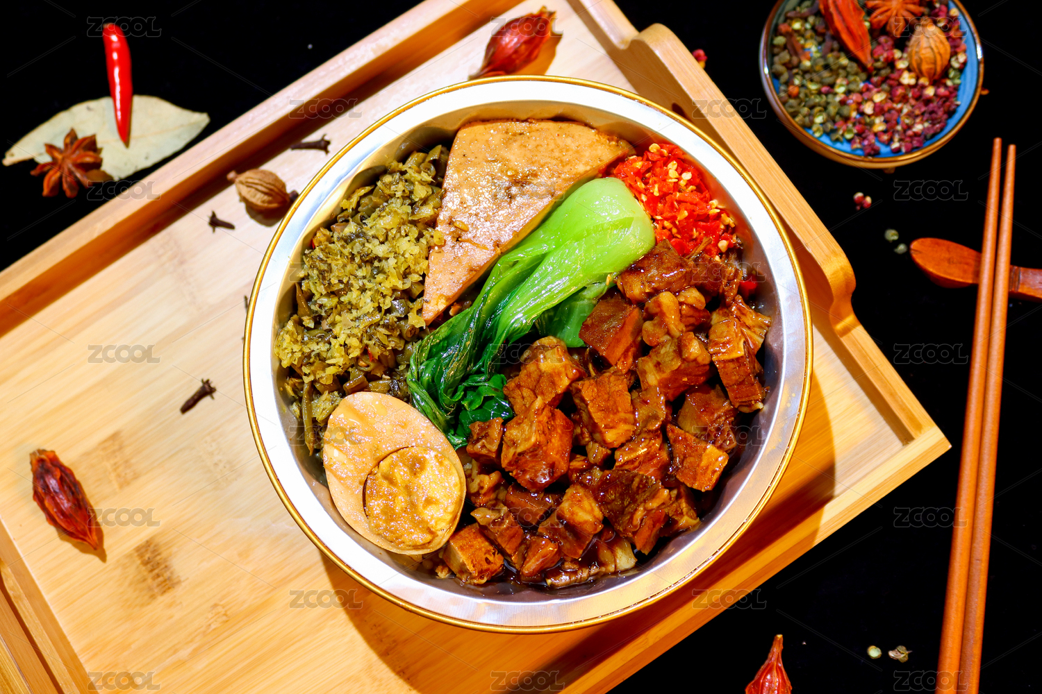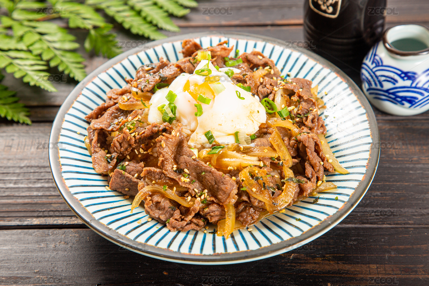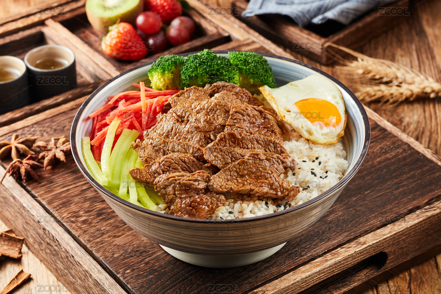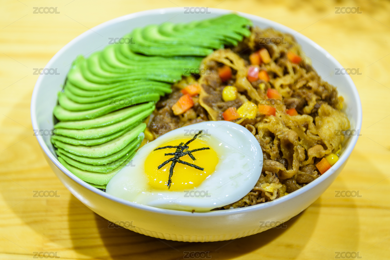 一盤紅燒牛肉飯配生菜紫甘藍(lán)沙拉