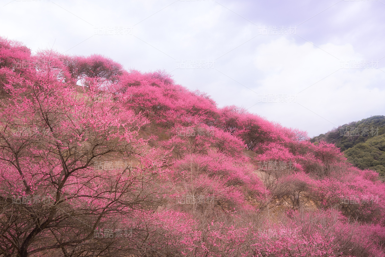 春日山野間粉紅花海漫山遍野的紅梅
