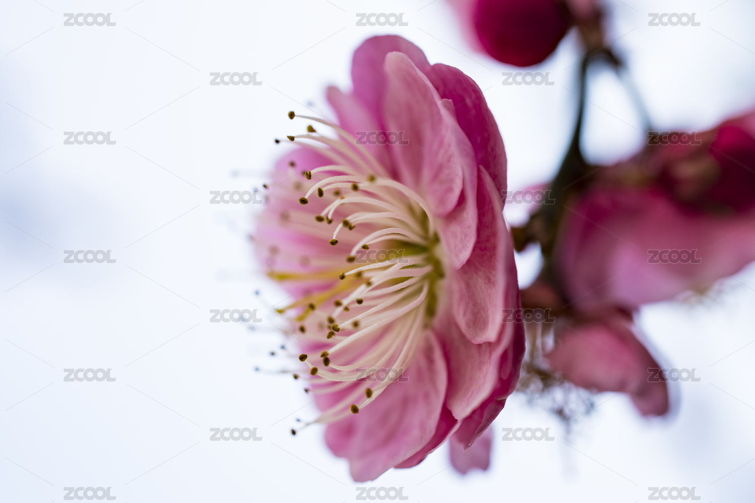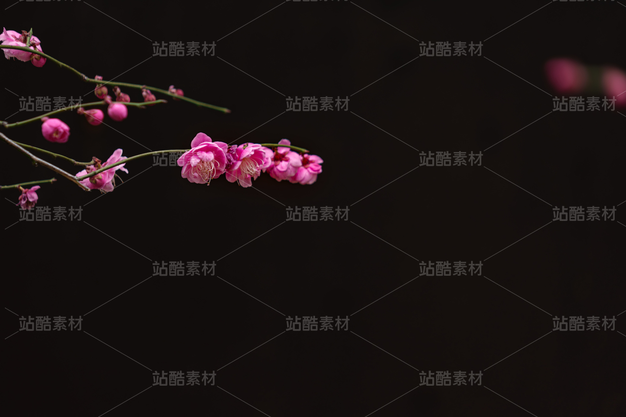 一枝紅梅粉艷的花瓣清晰可見凌寒獨開雅致