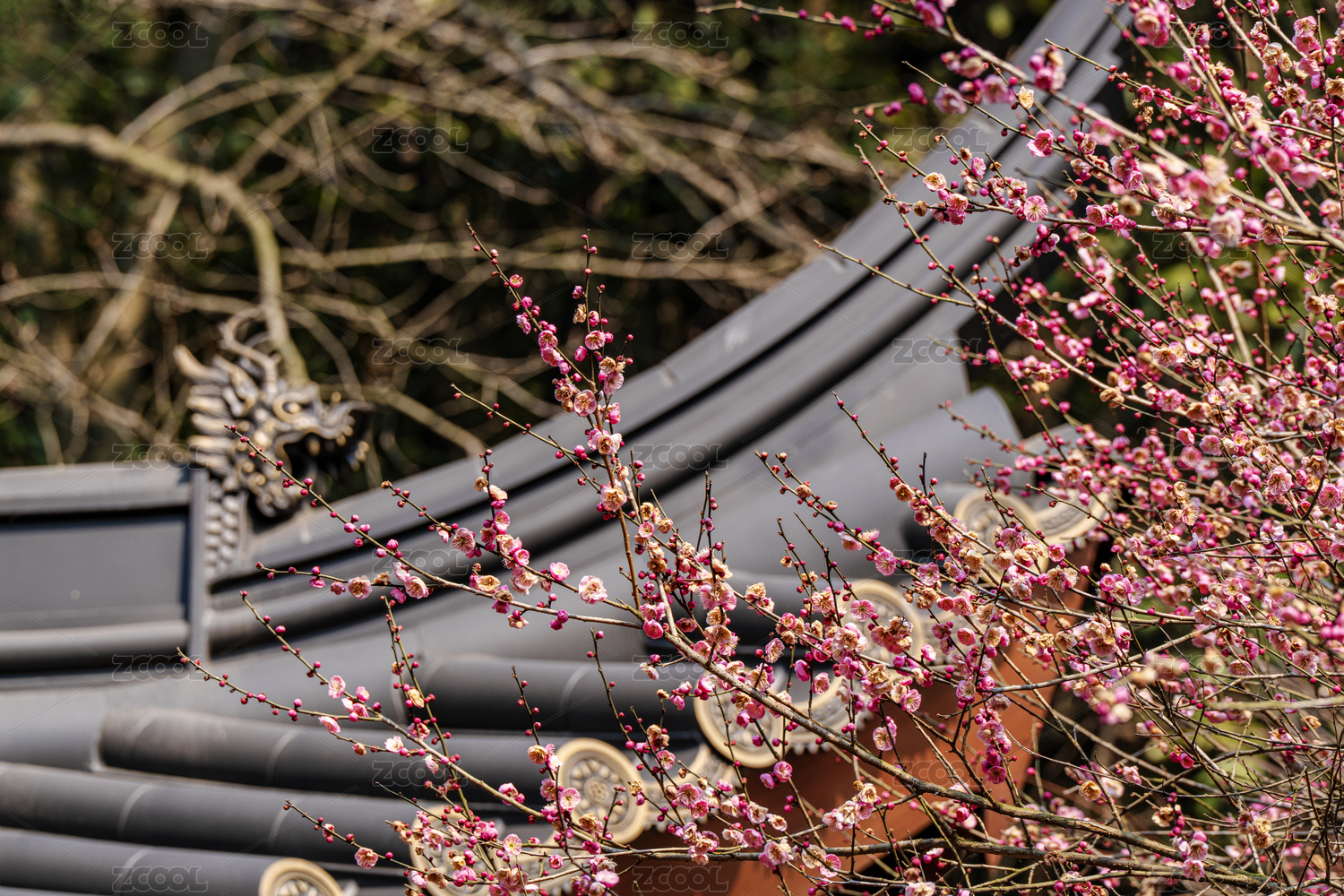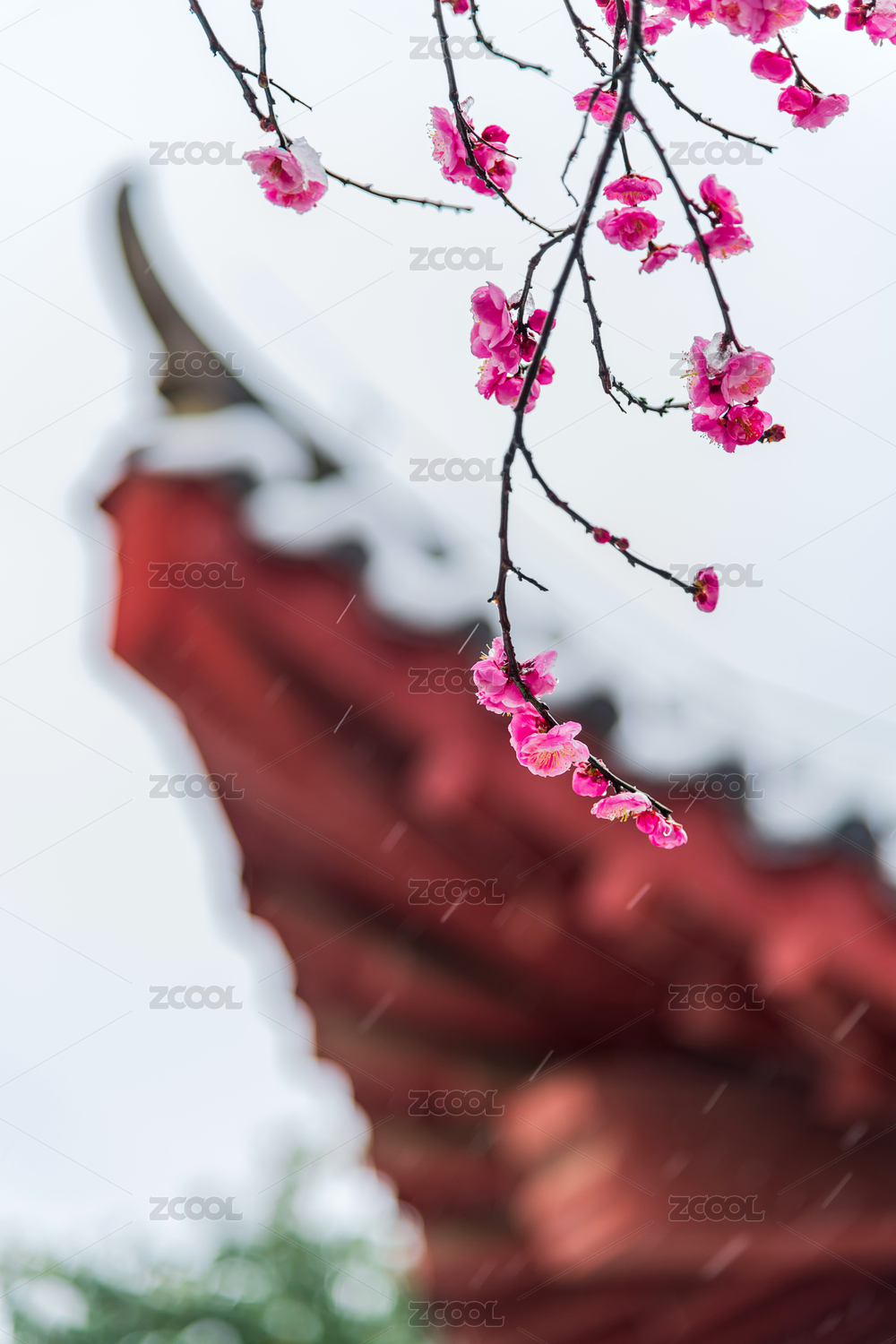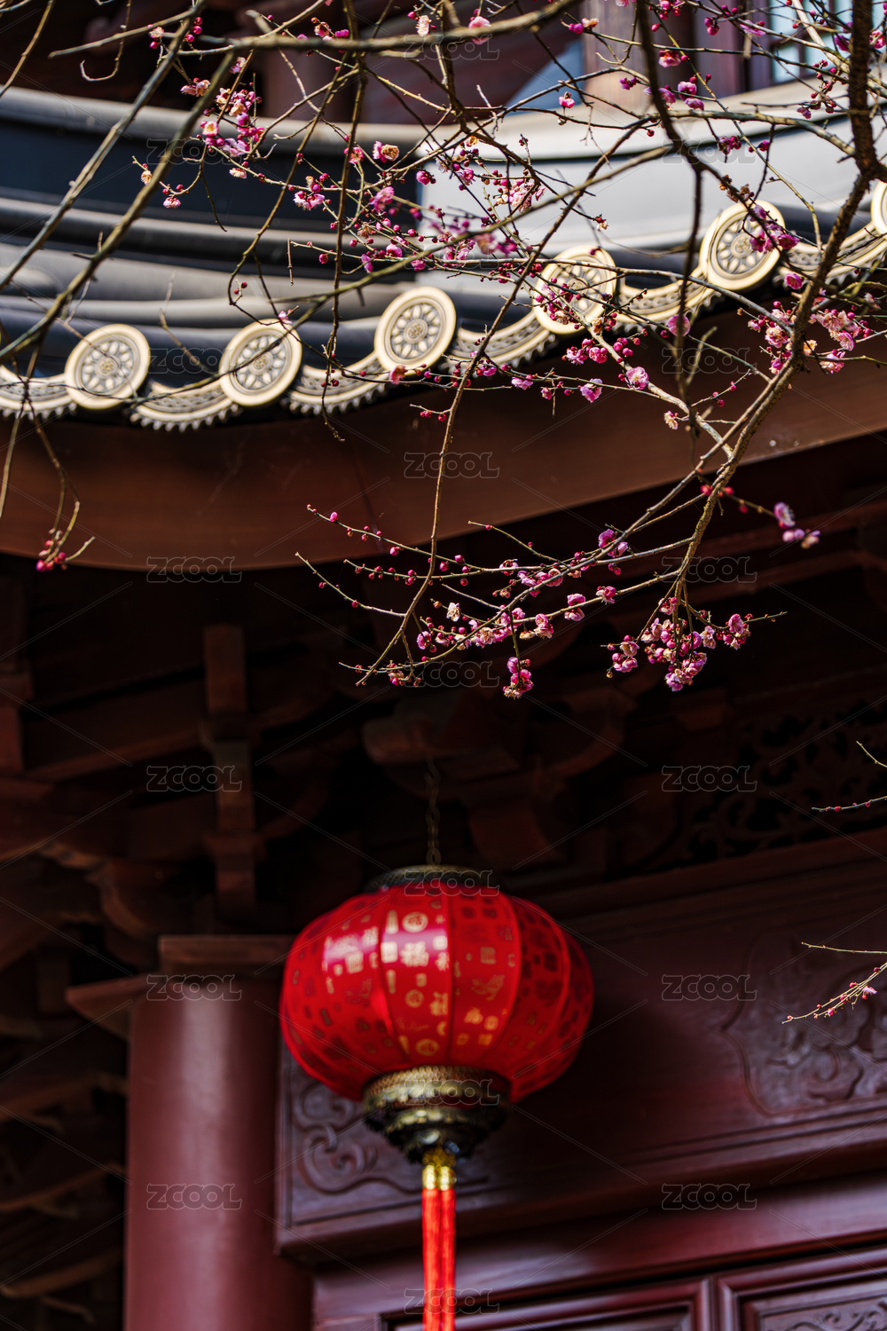 杭州韜光寺的紅梅與紅燈籠