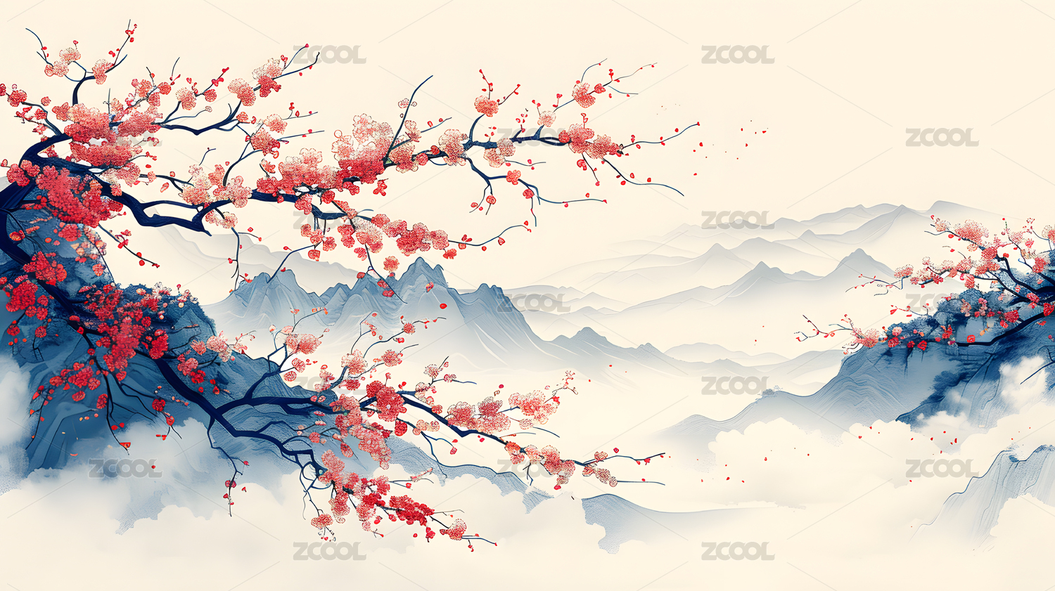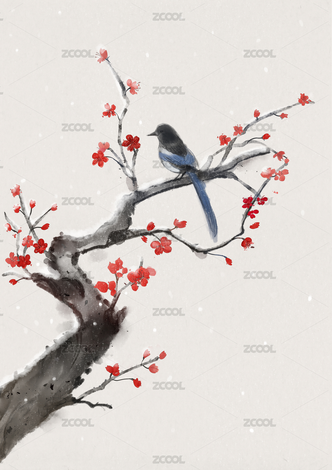 冬季紅梅盛開國風插畫