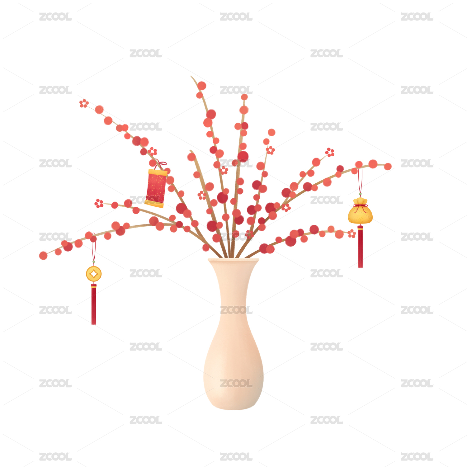 紅梅插花春節(jié)掛飾
