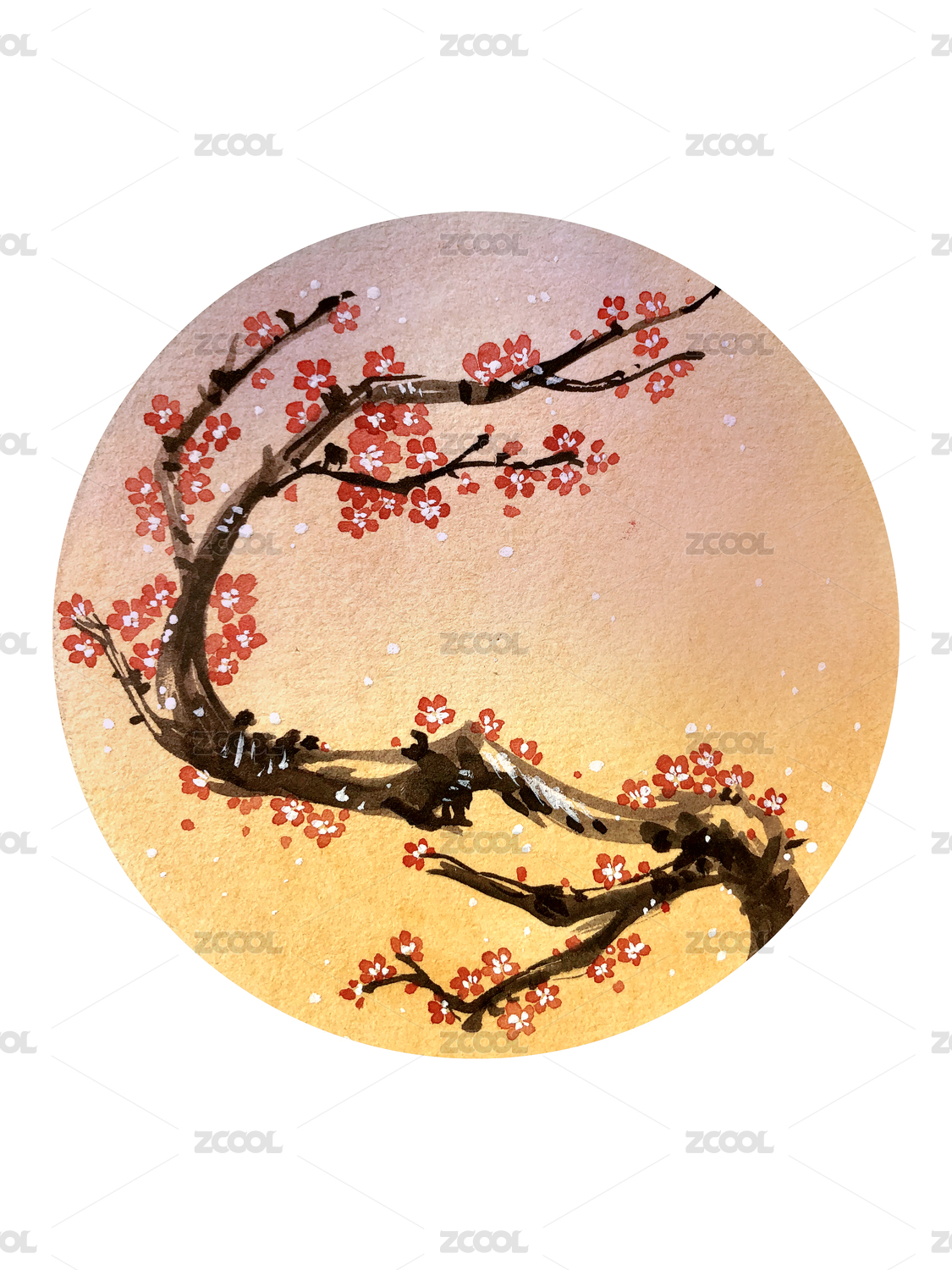 中國風水墨紅梅插畫風景