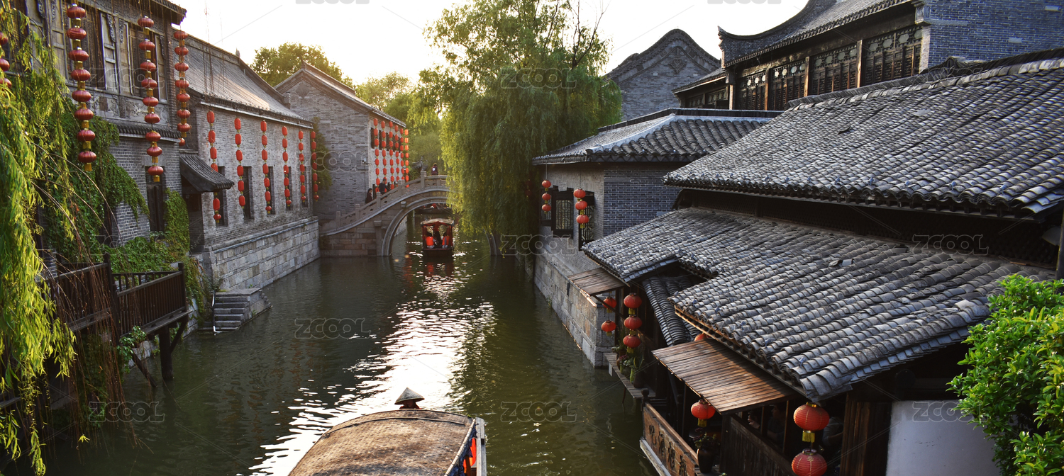 山東省臺(tái)兒莊古城內(nèi)運(yùn)河沿岸風(fēng)光