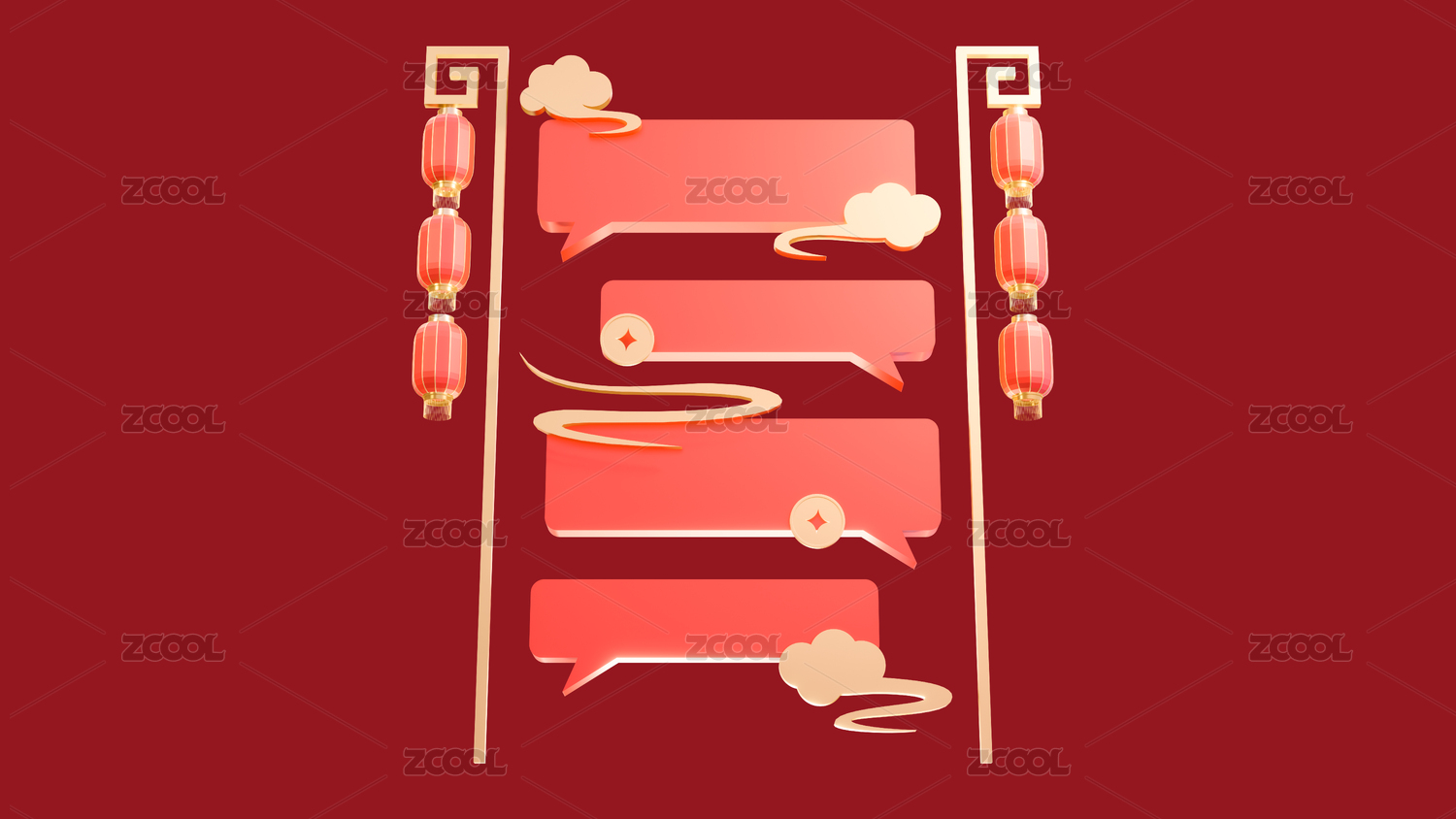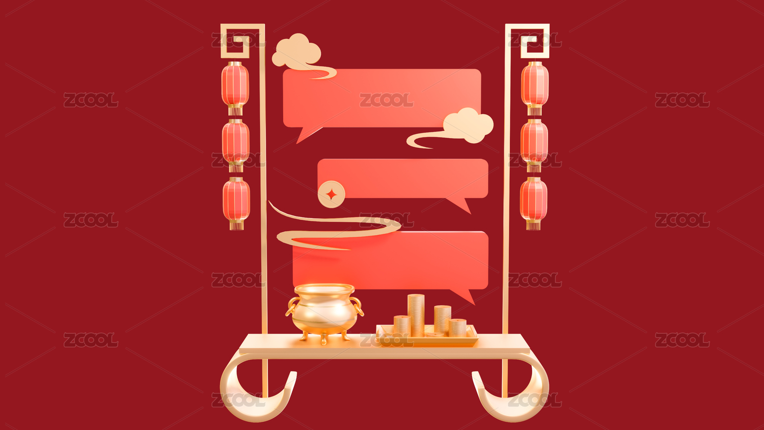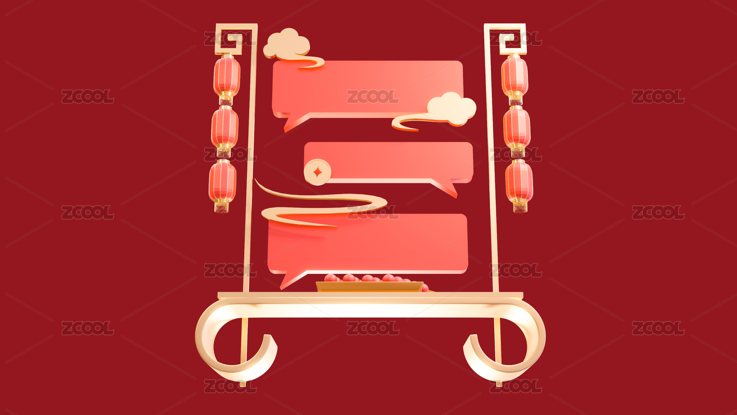 3d中式年貨節(jié)春節(jié)集市攤喜慶場景元素插畫