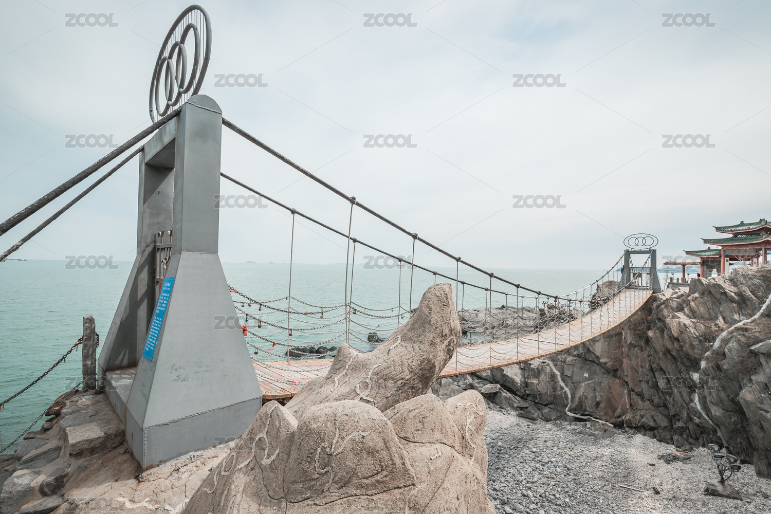 山東煙臺市煙臺山懸索橋海濱風(fēng)光