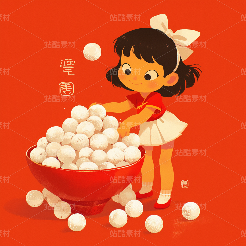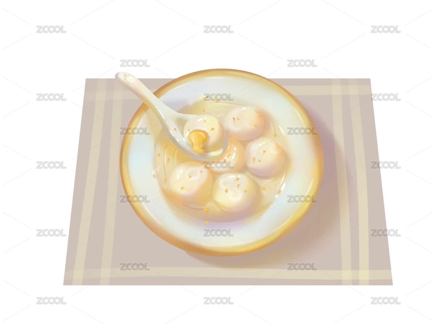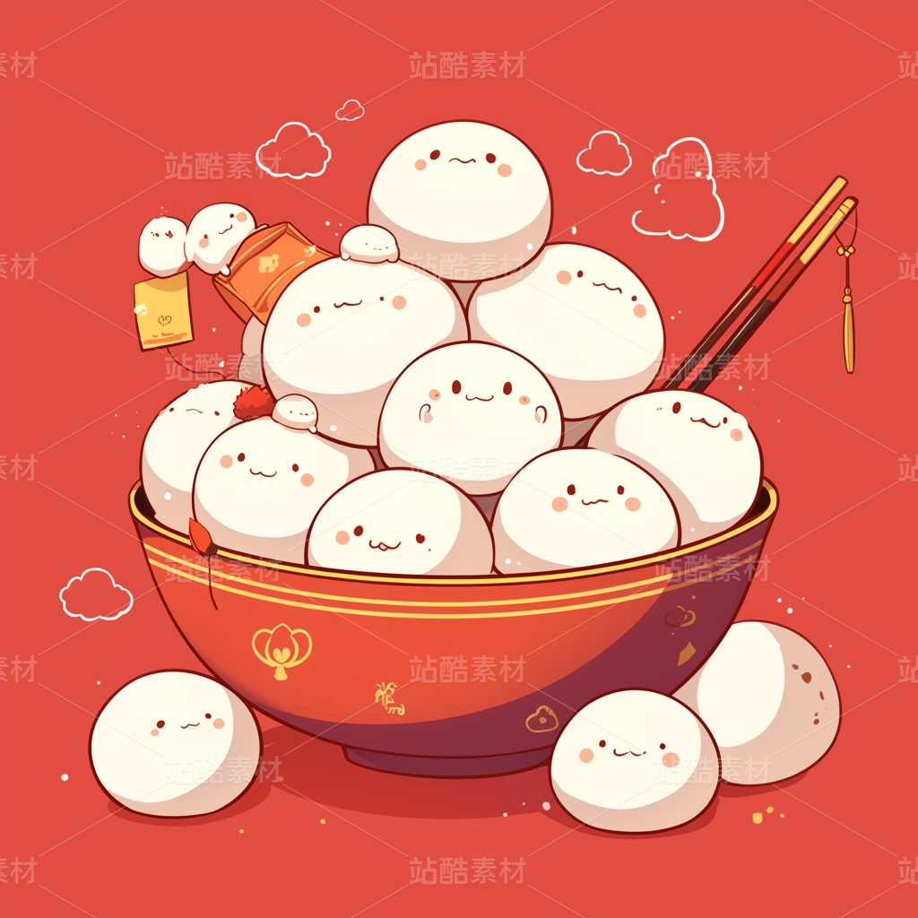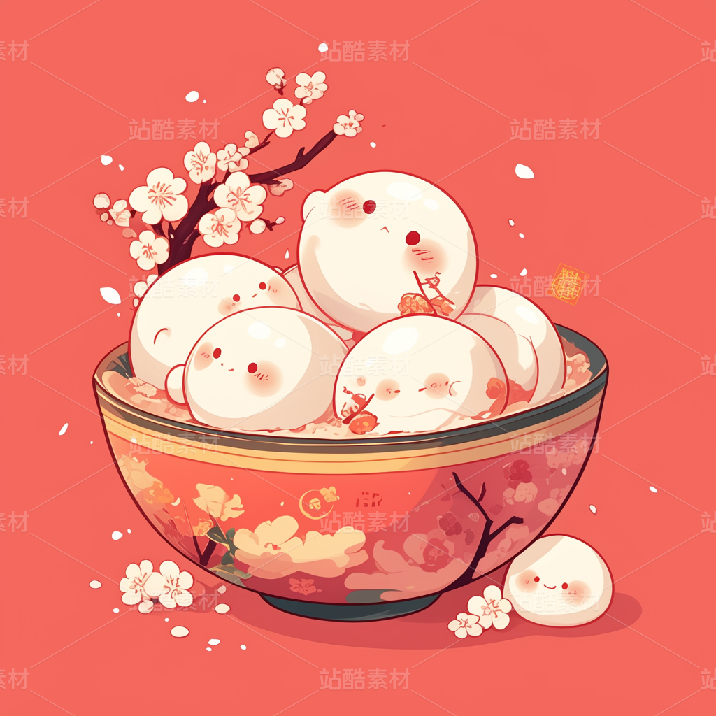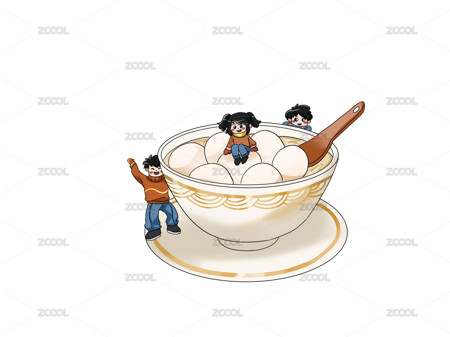 冬至湯圓元宵手繪插畫食物中華美食卡通畫素材