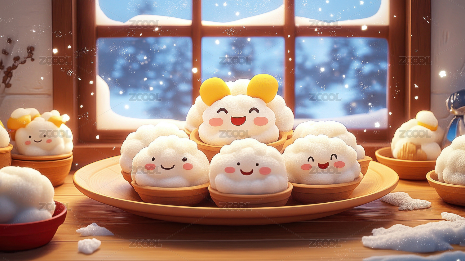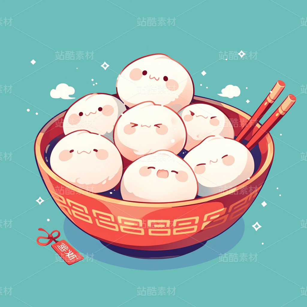 卡通可愛(ài)湯圓餃子立冬冬至元宵節(jié)插畫