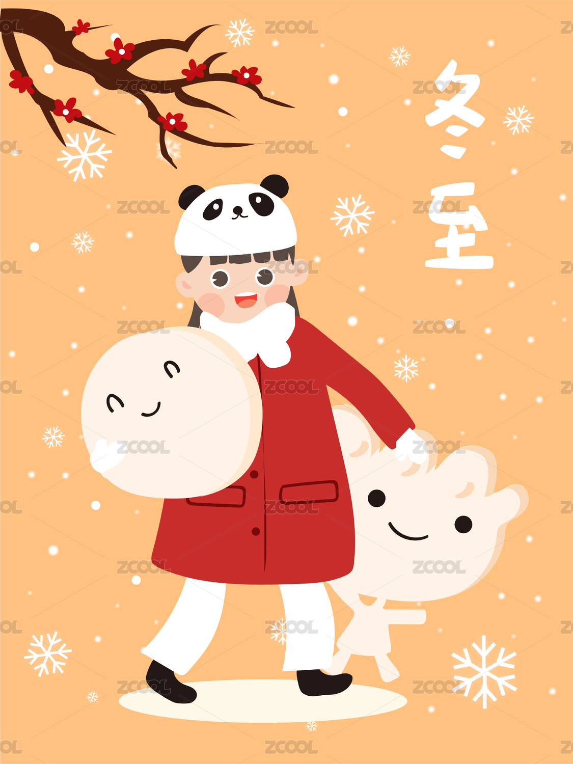 國(guó)潮24節(jié)氣冬至卡通人物插畫