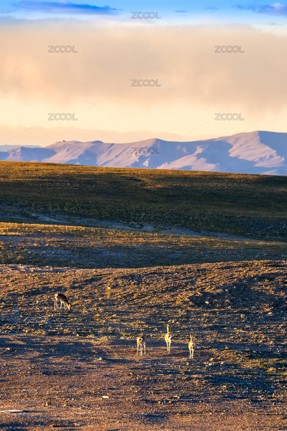 西藏阿里羌塘無人區(qū)的草原與藏羚羊