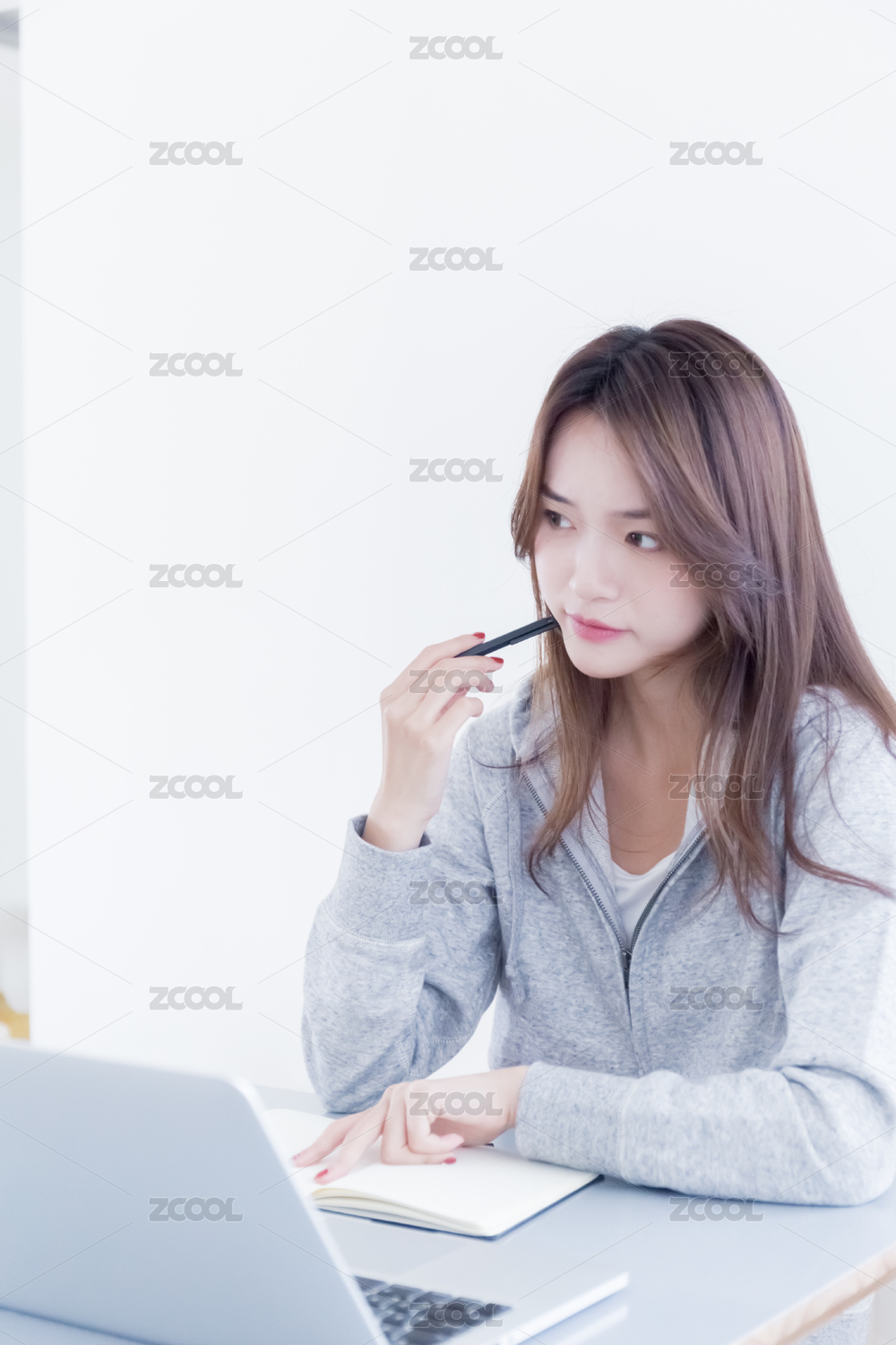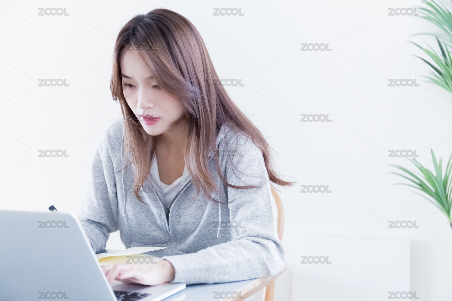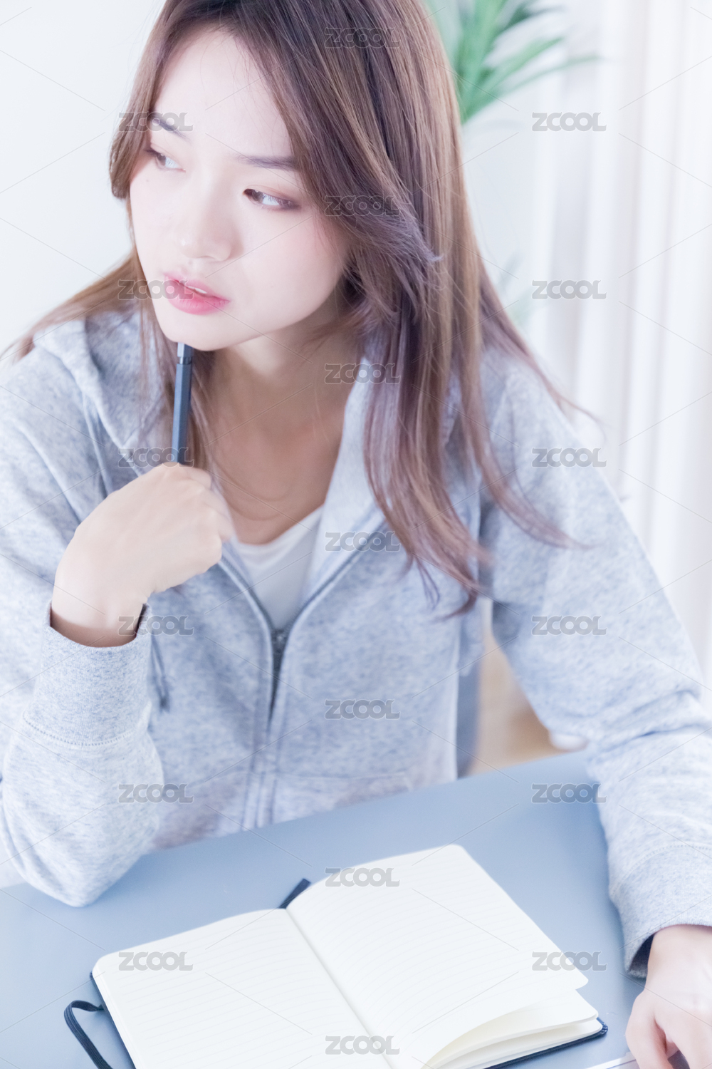 畫像的學生學習上的耳機和筆記本電腦記筆記在筆記本坐在她的辦公桌在家里線?;煅獊喼薜闹袊J健?/div>