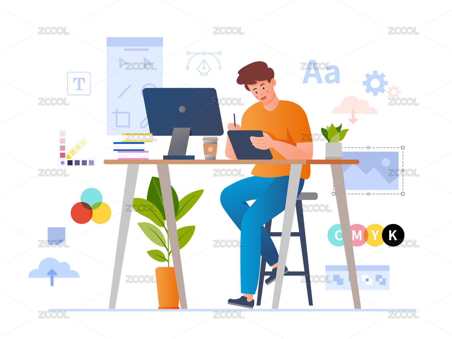 設(shè)計師正在設(shè)計畫面矢量漸變插畫
