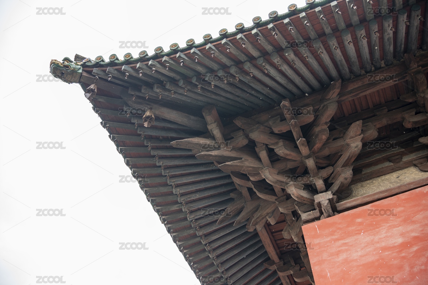 山西朔州崇福寺古建筑飛檐結(jié)構(gòu)特寫