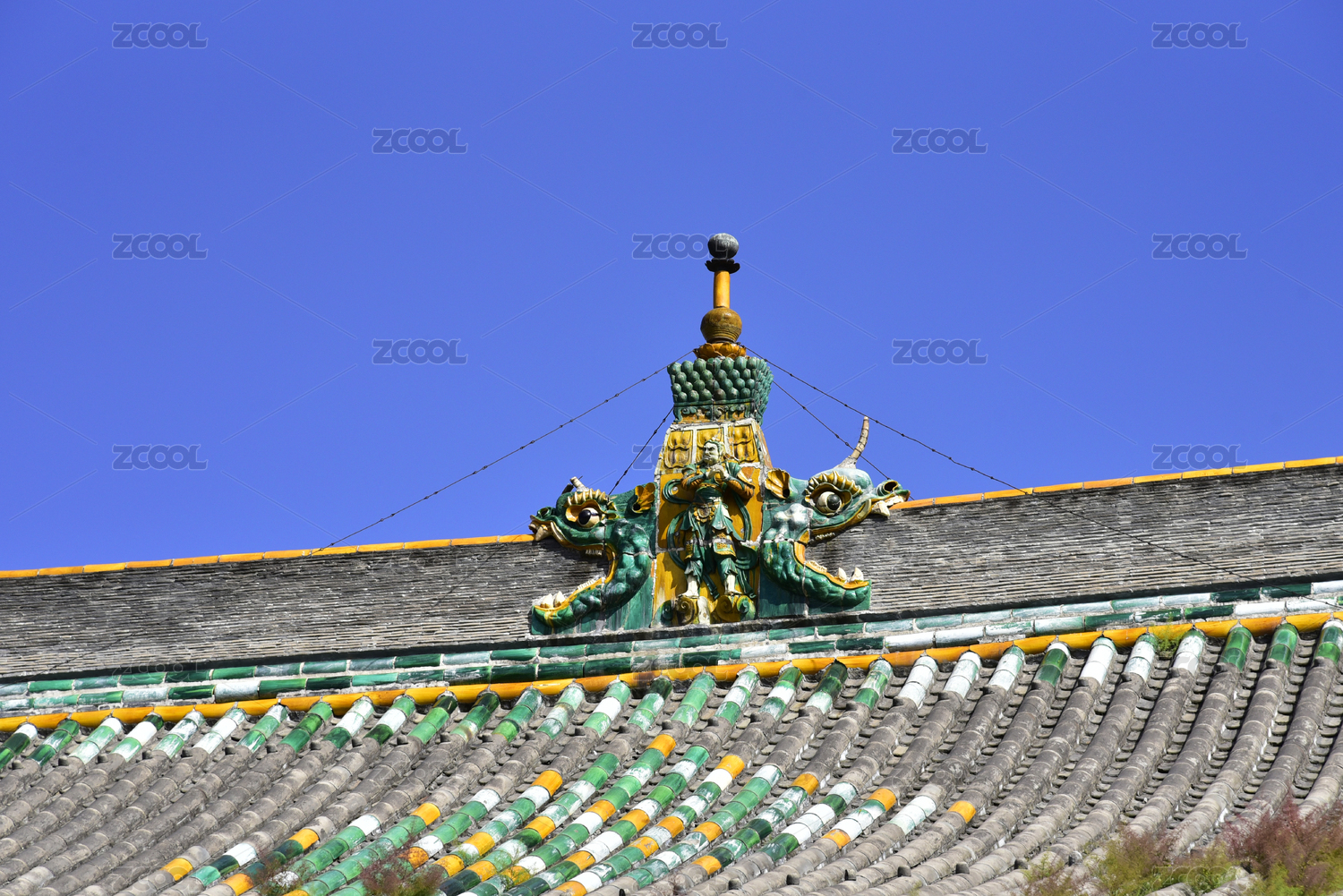 山西省朔州崇福寺彌陀殿古建筑屋頂琉璃脊飾
