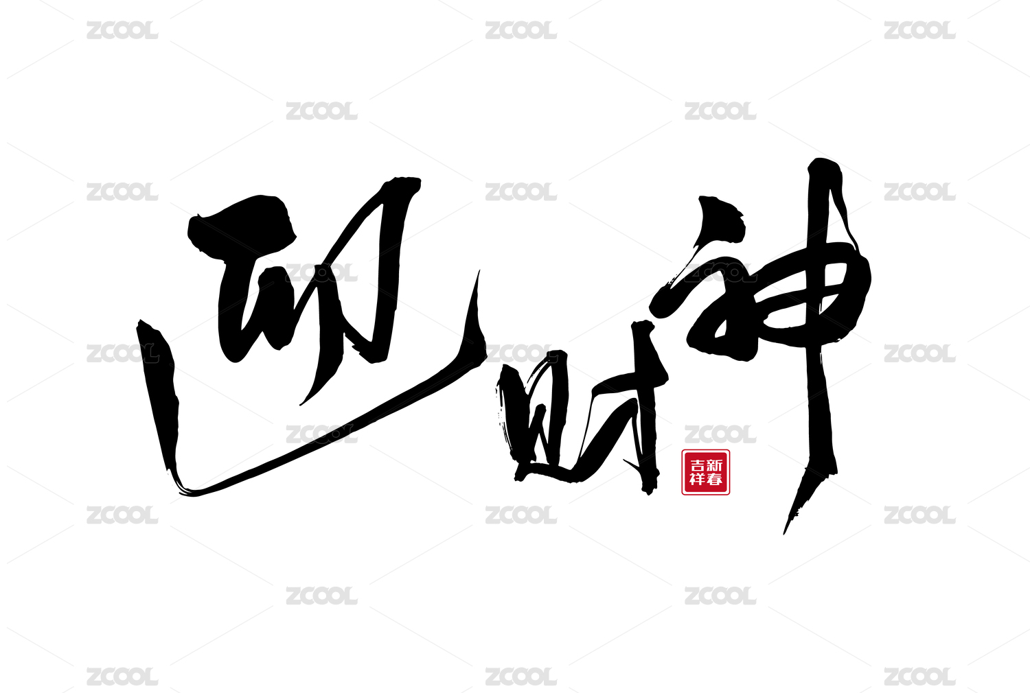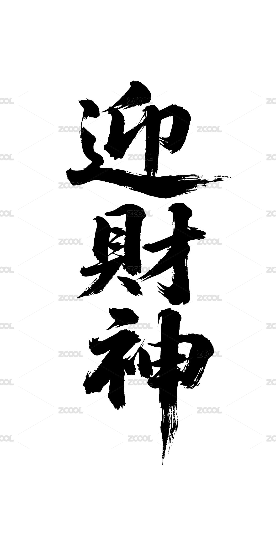 迎財(cái)神,新年中國風(fēng)毛筆書法矢量字體