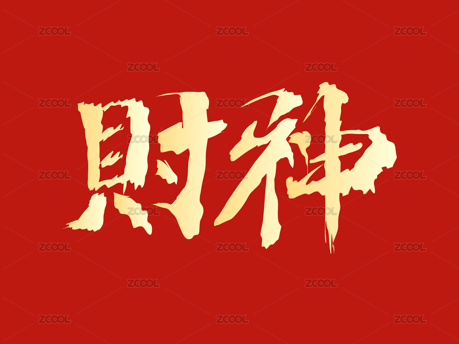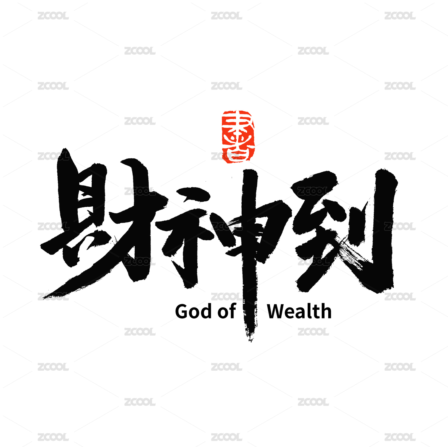 財(cái)神到國風(fēng)漢字毛筆字手寫