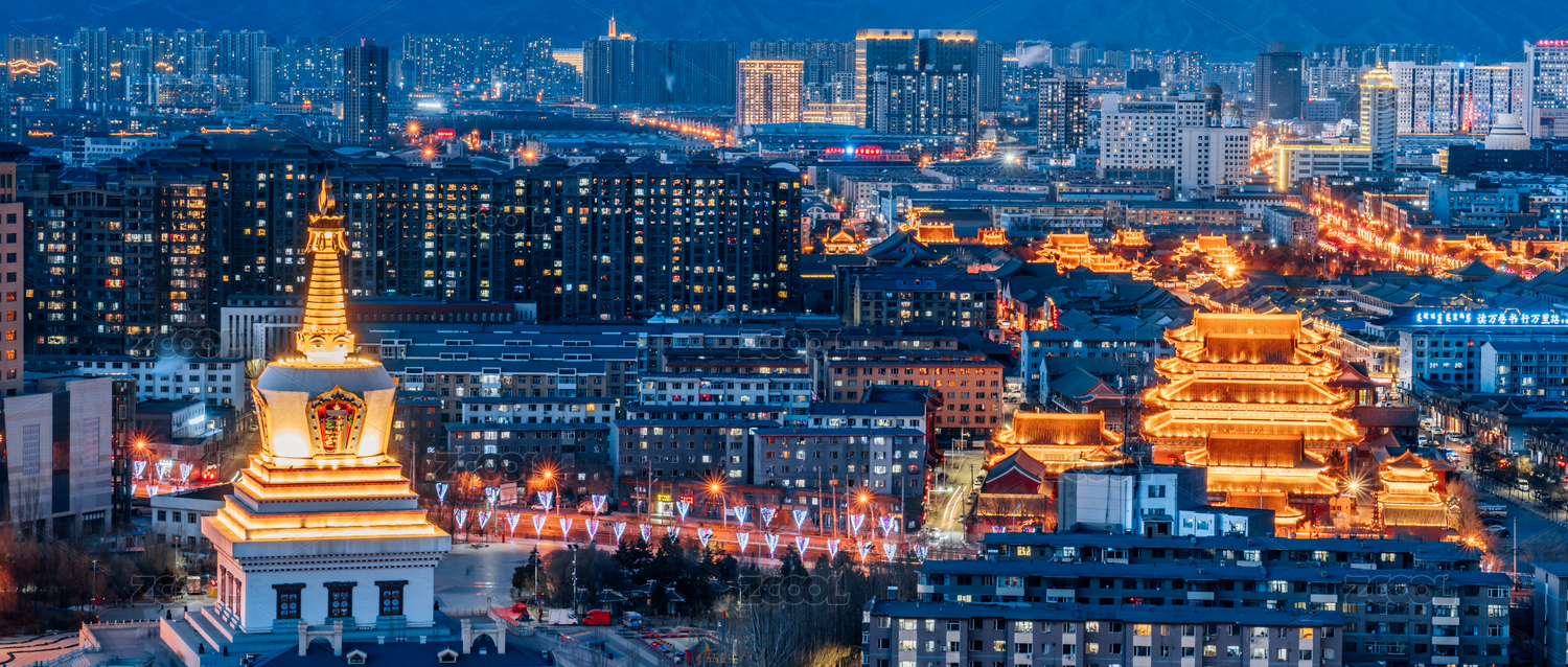 內(nèi)蒙古呼和浩特市寶爾汗佛塔大召夜景
