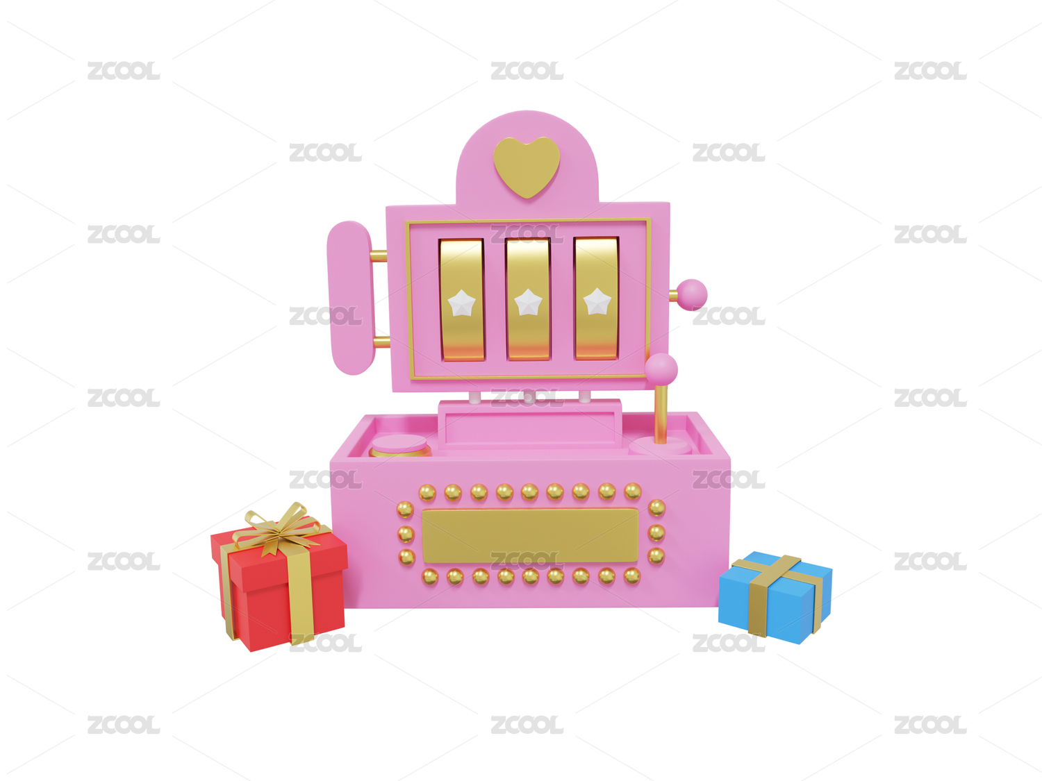 3D促銷老虎機娃娃機粉紅色娃娃機彩色禮物盒
