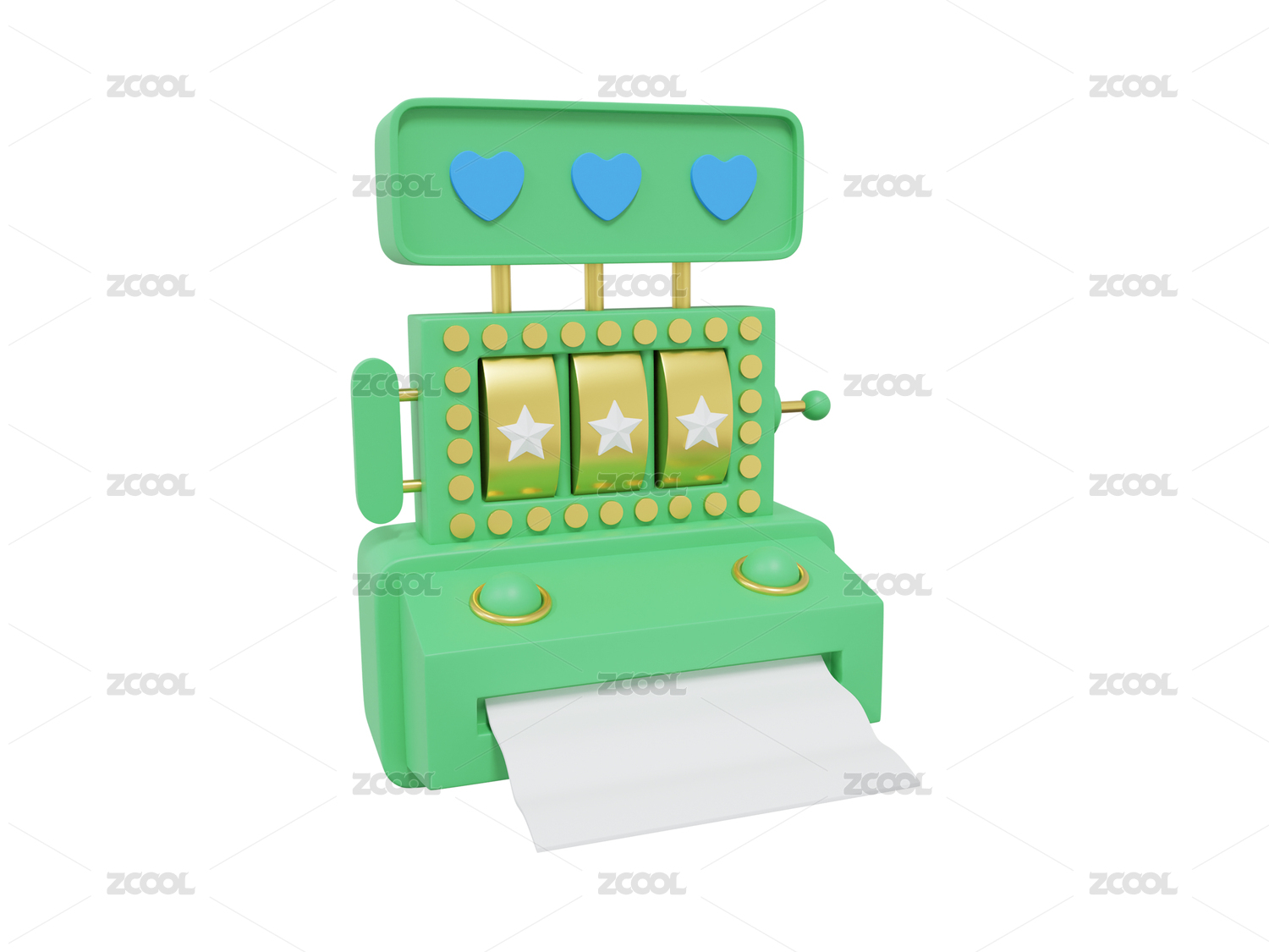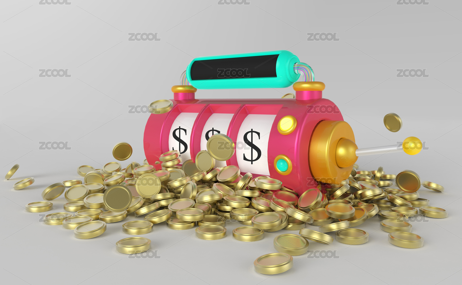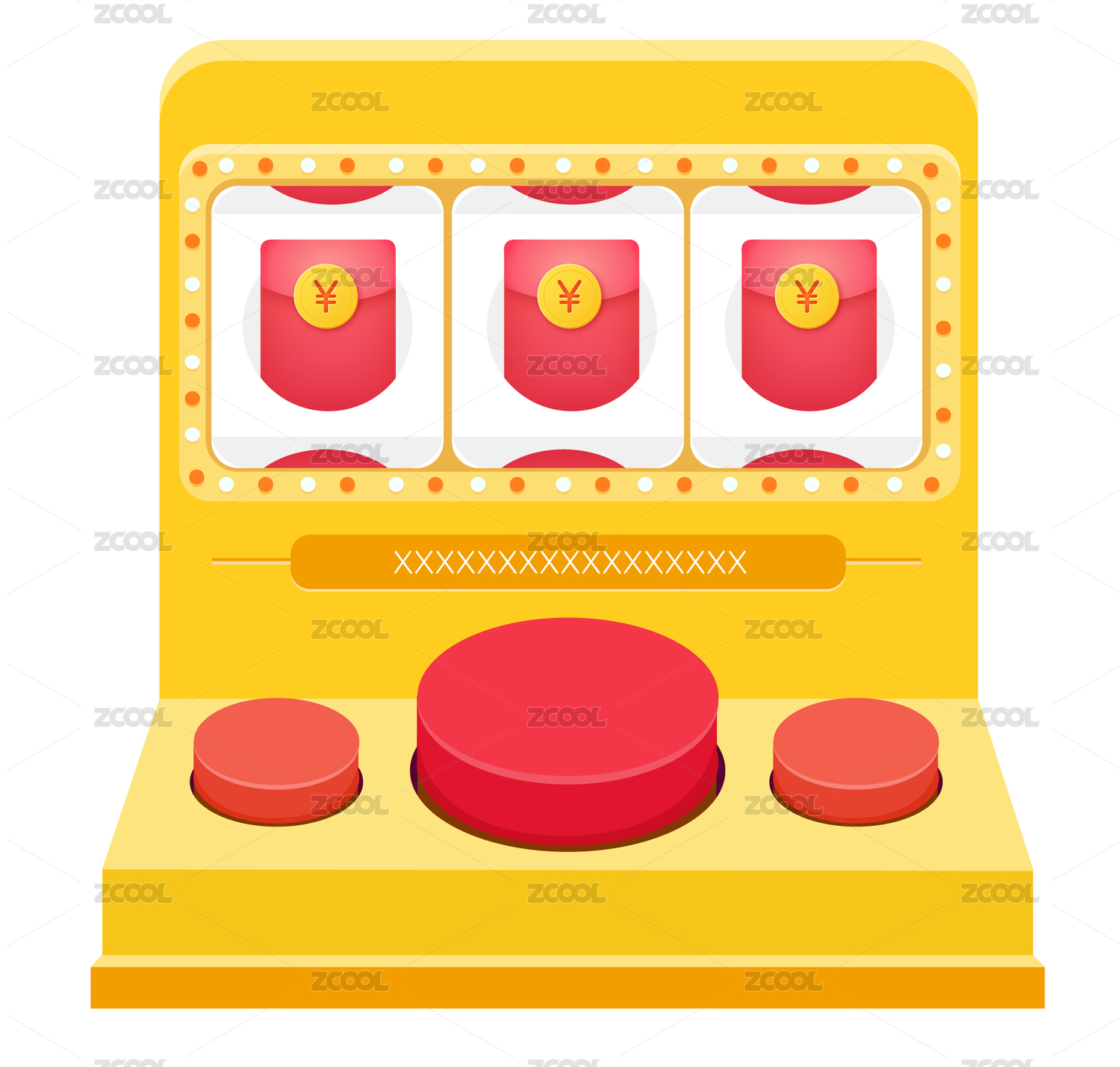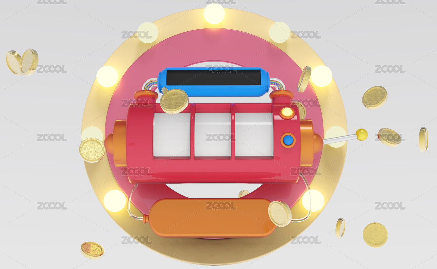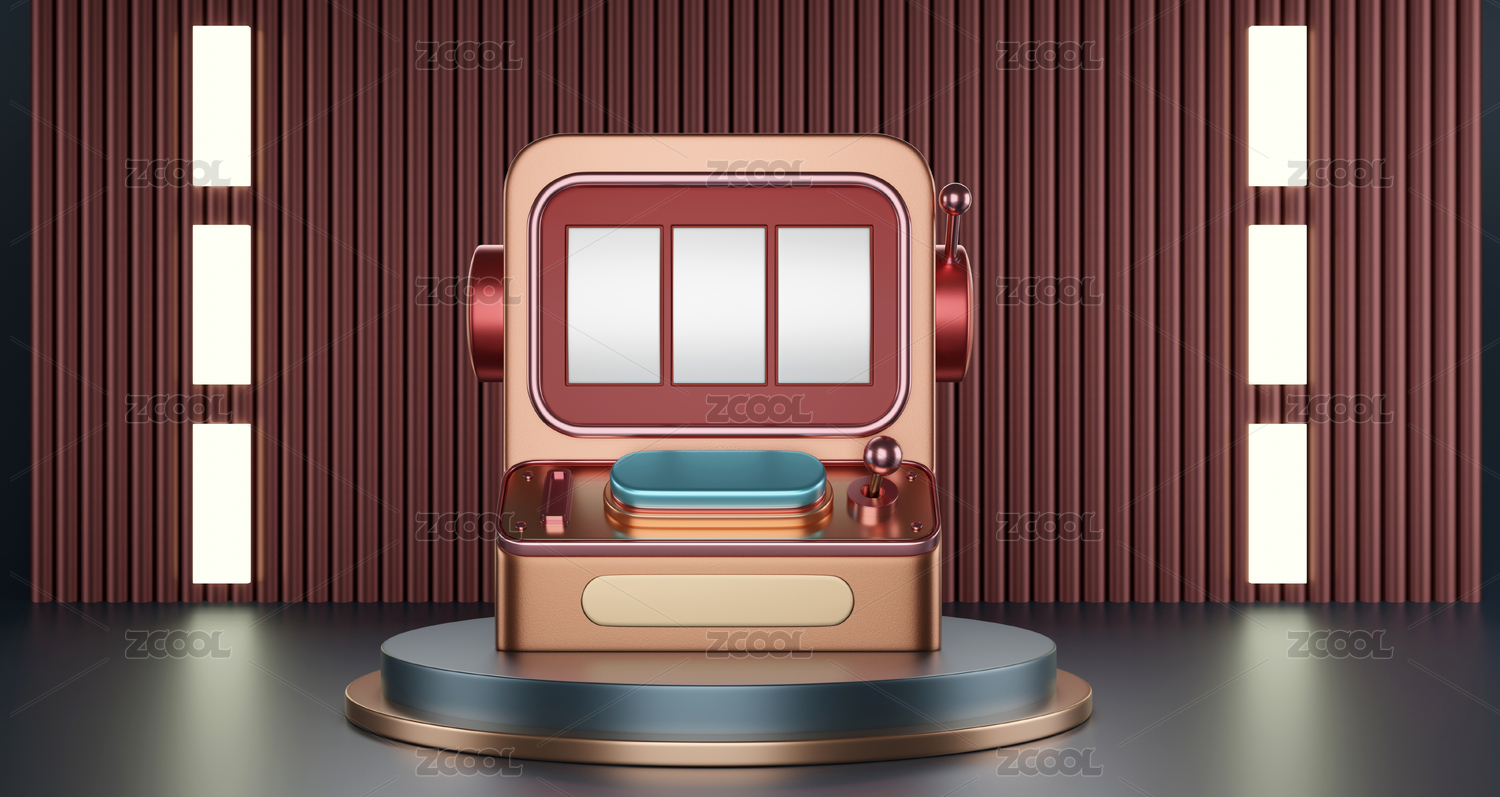 紅色背景3D立體卡通游戲抽獎老虎機