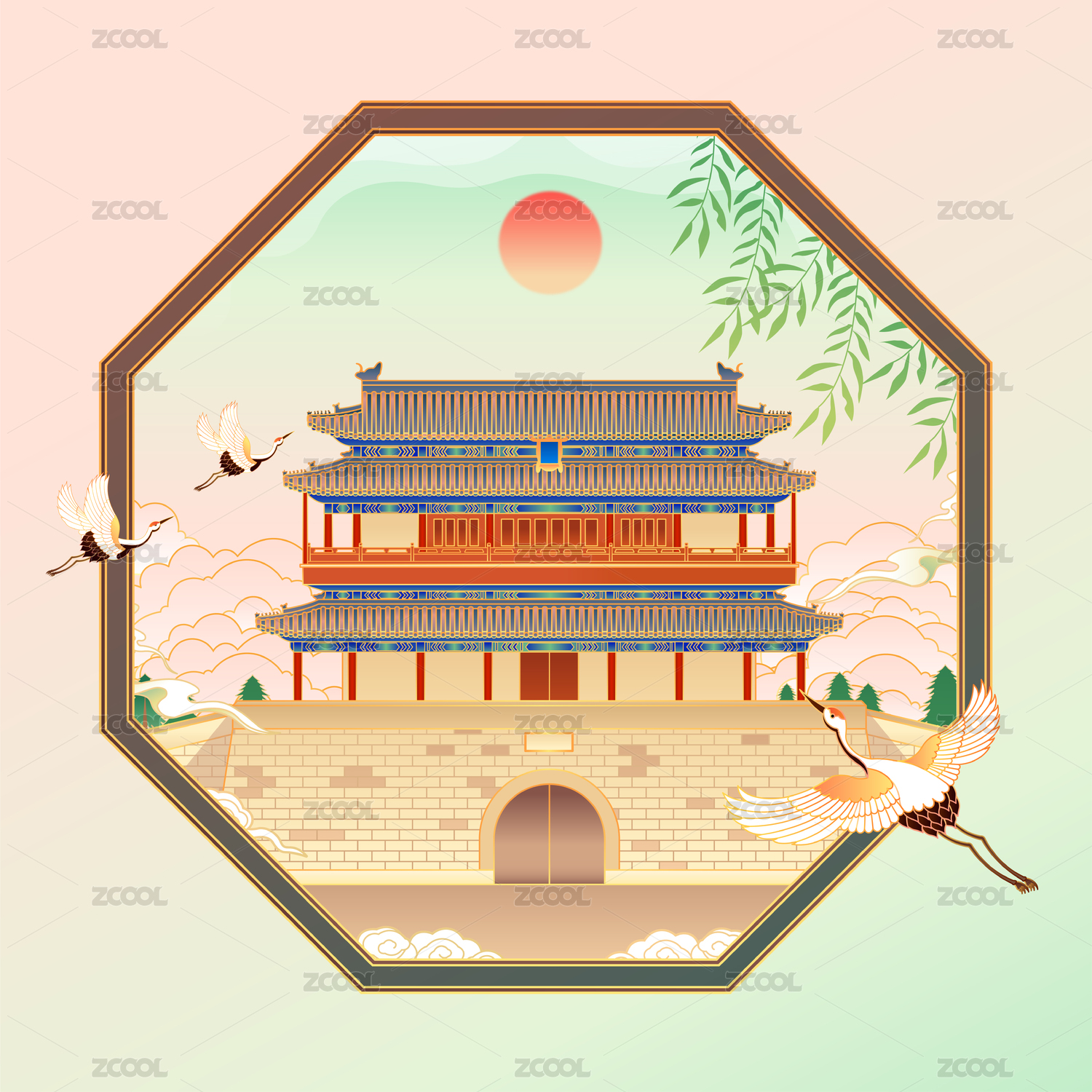 北京中軸線正陽門城樓古建筑插畫