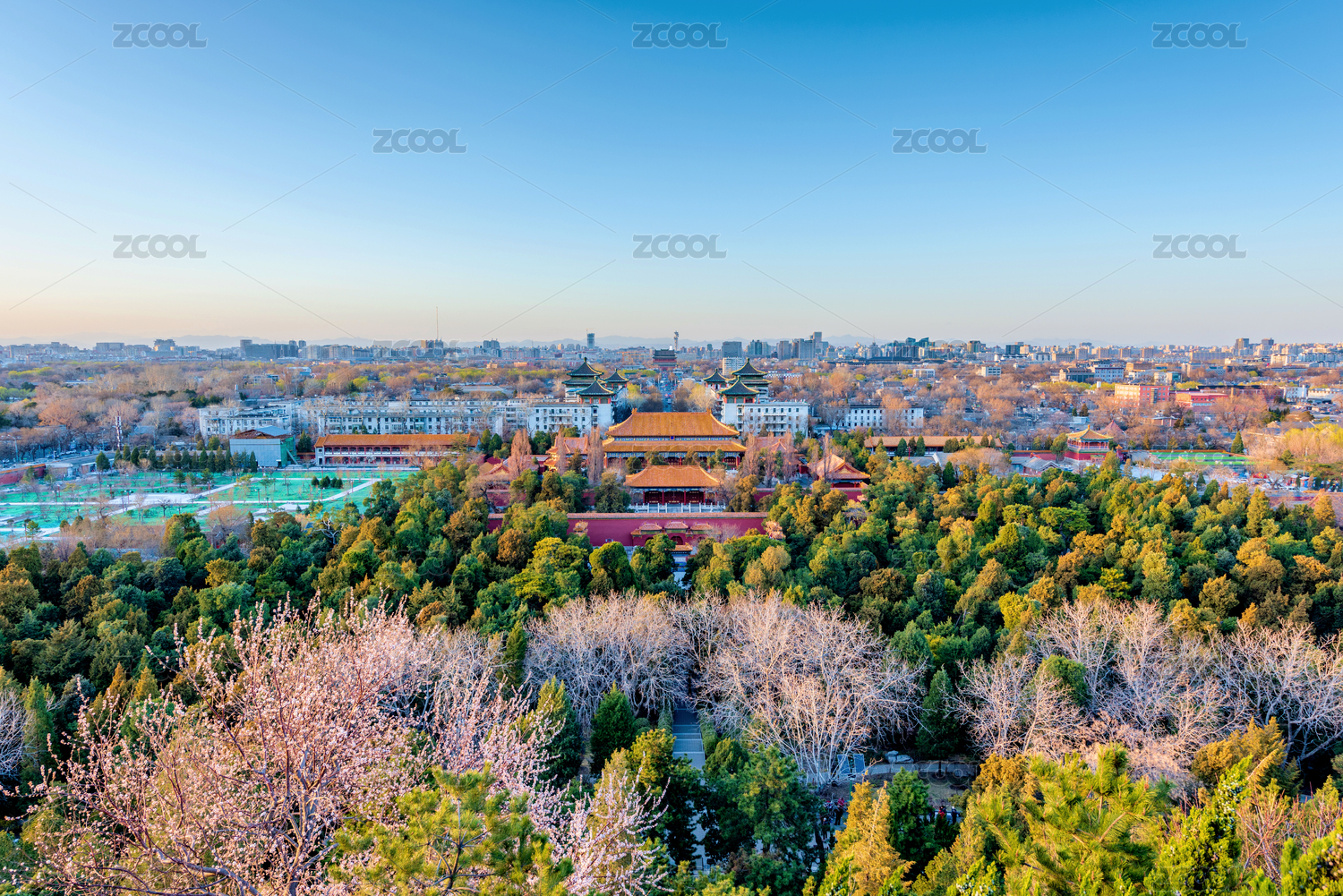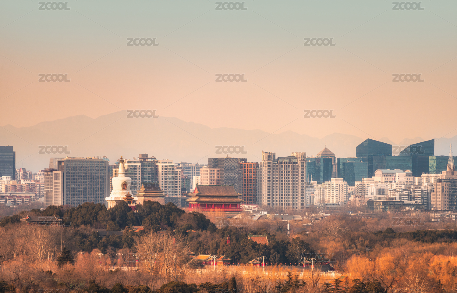 北京燕山下的鐘鼓樓白塔城市中軸線遠(yuǎn)景圖