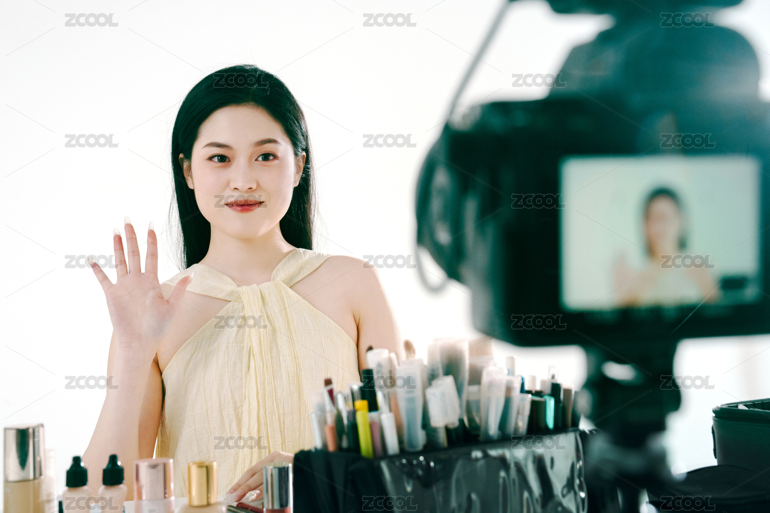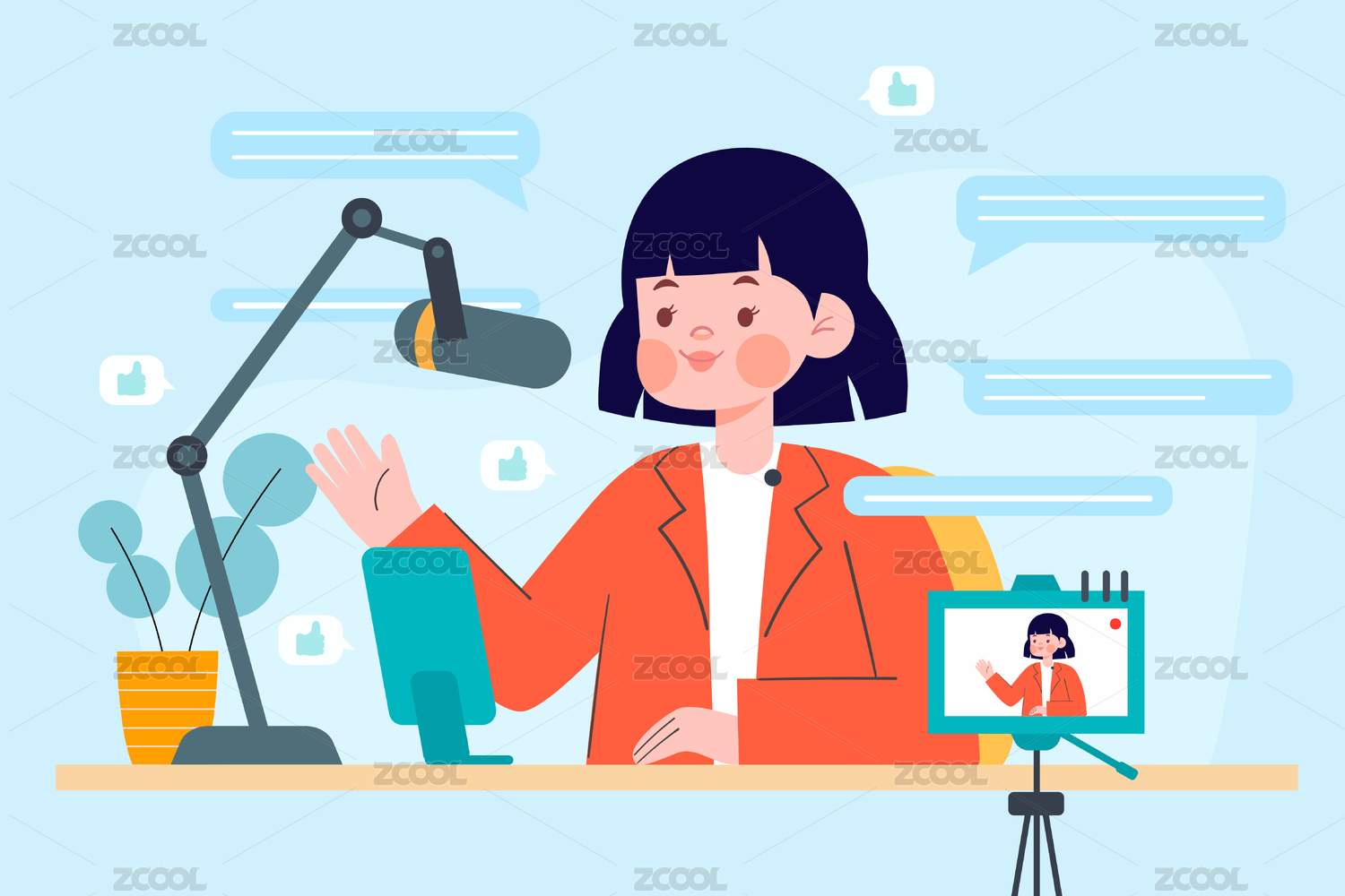 網(wǎng)絡女主播直播帶貨手機話筒禮物矢量插畫
