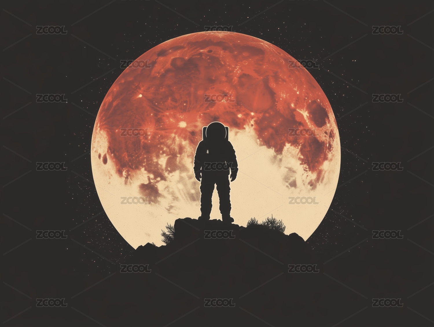 月球上的宇航員剪影插畫
