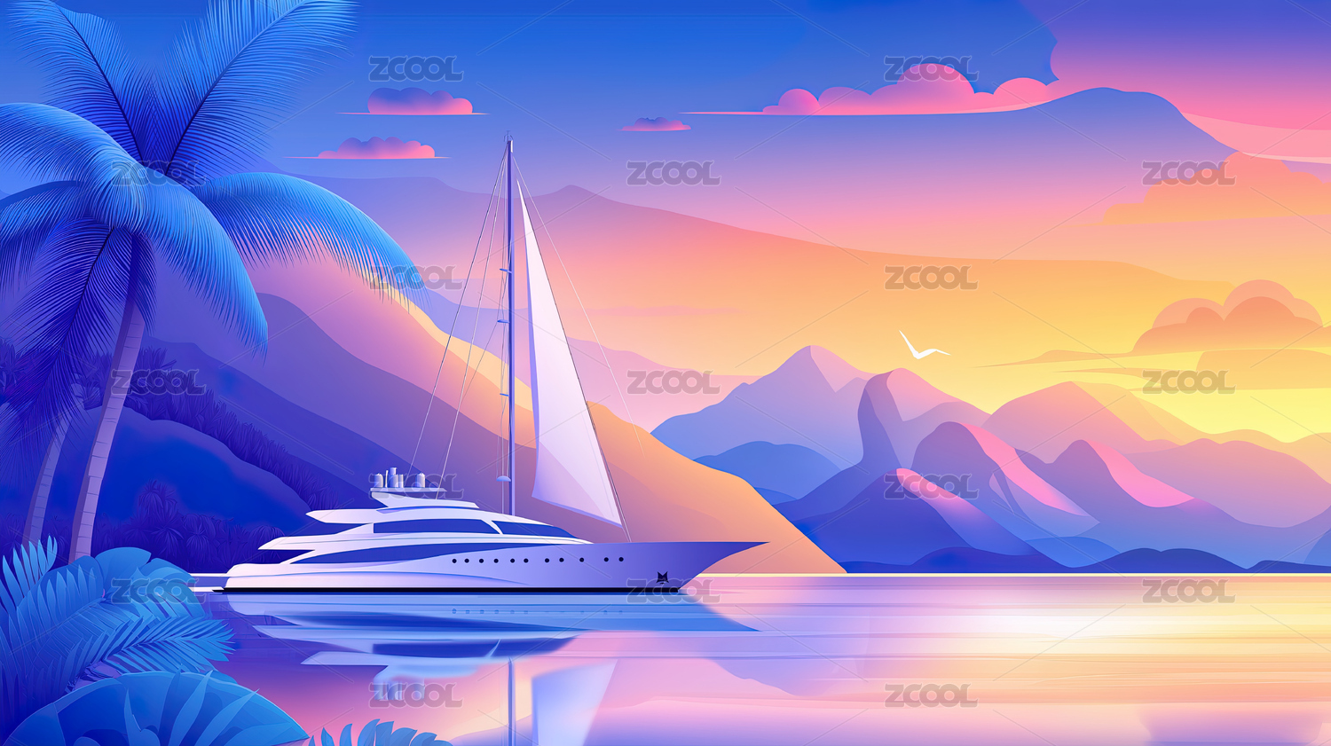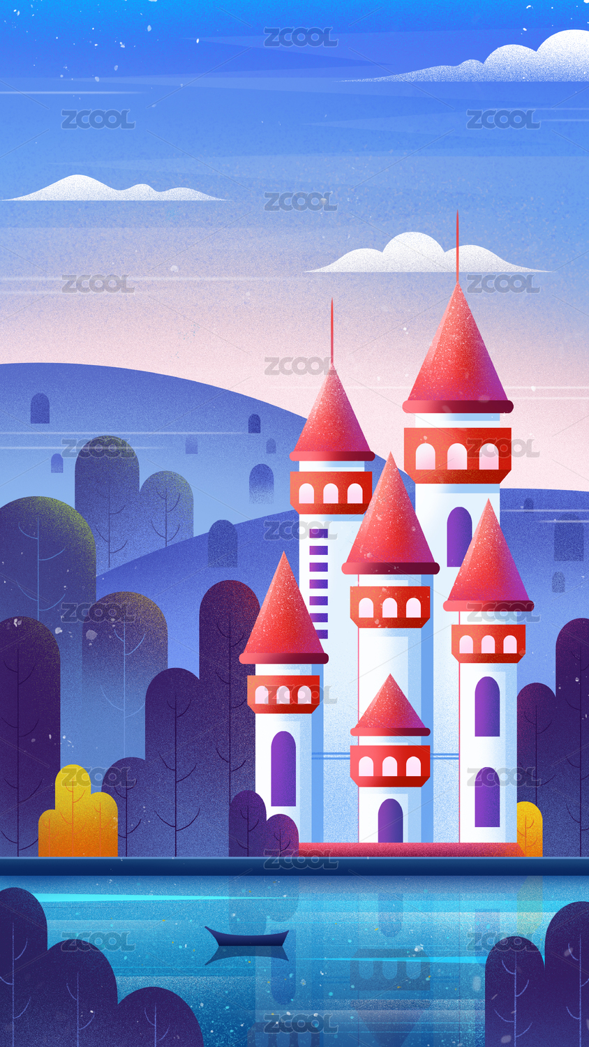 水墨淡彩風藍色冬季雪山雪景漸變極簡插畫