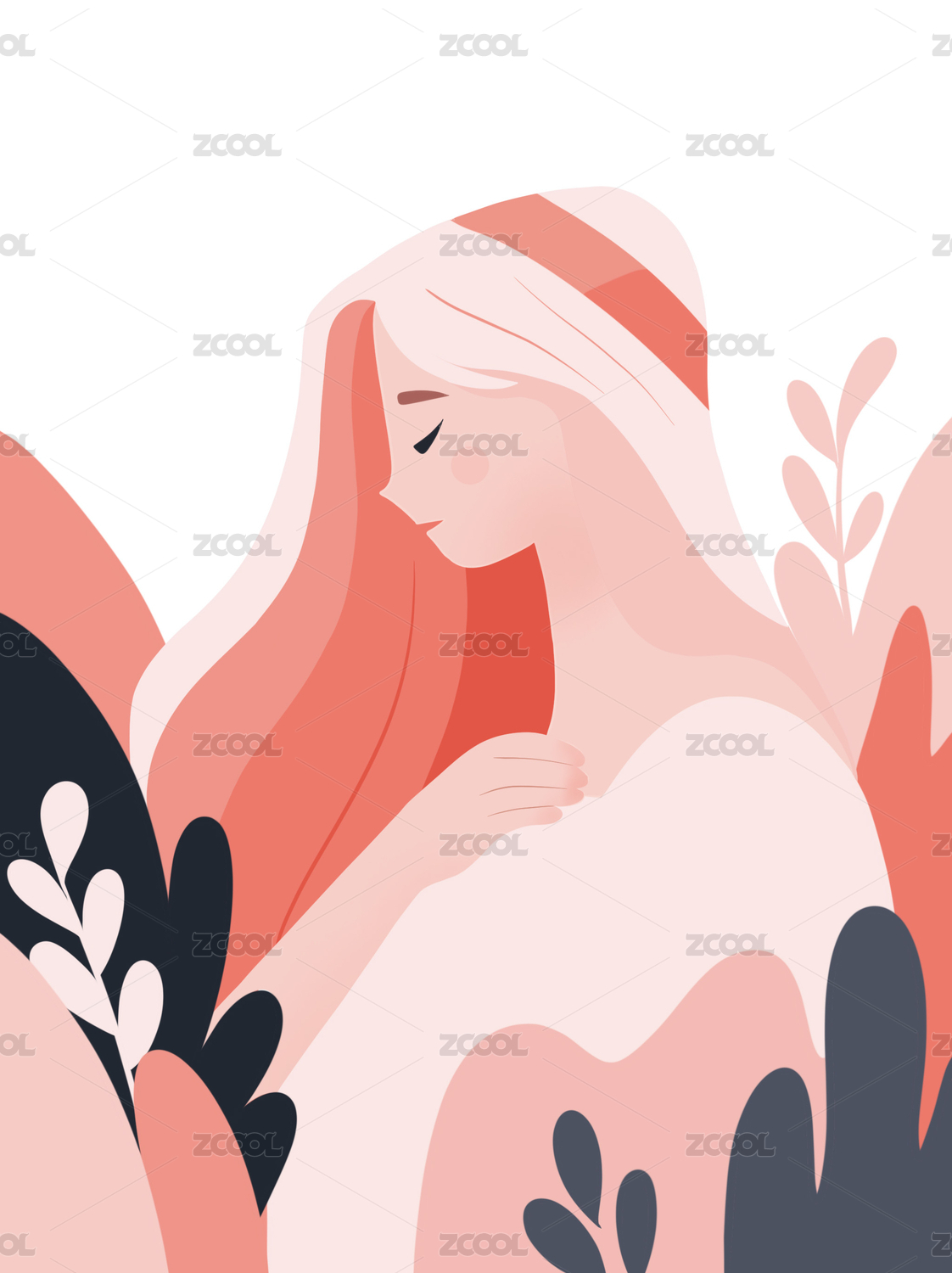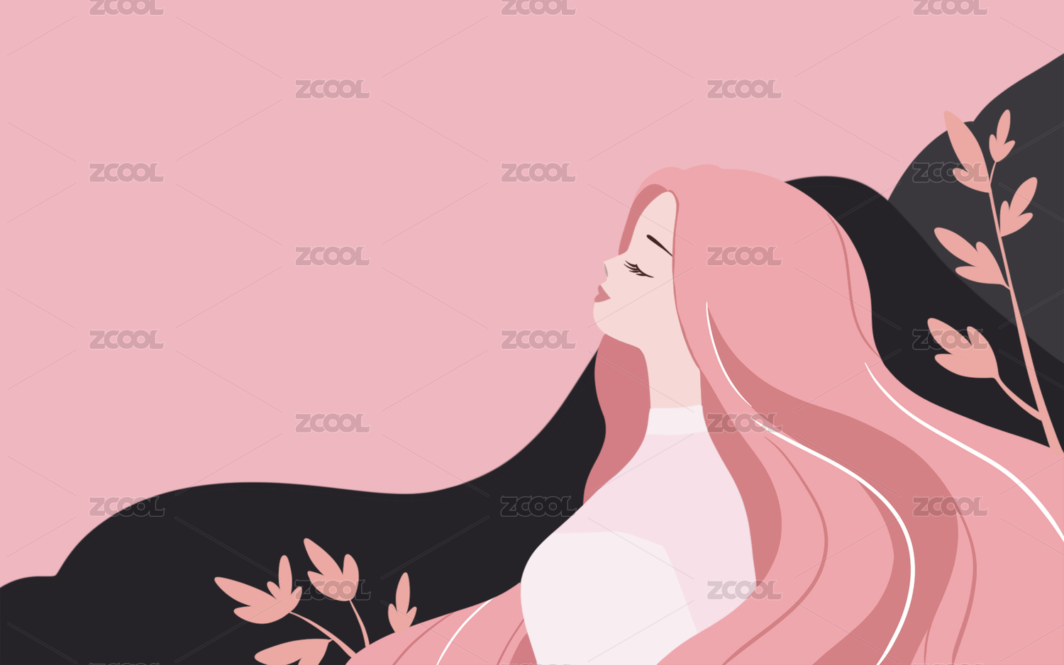粉色長發(fā)女孩溫柔唯美扁平風極簡插畫背景