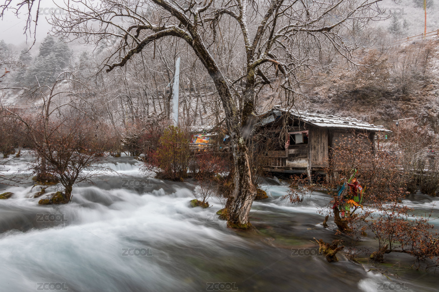 中國四川阿壩九寨溝冬季雪后風(fēng)光