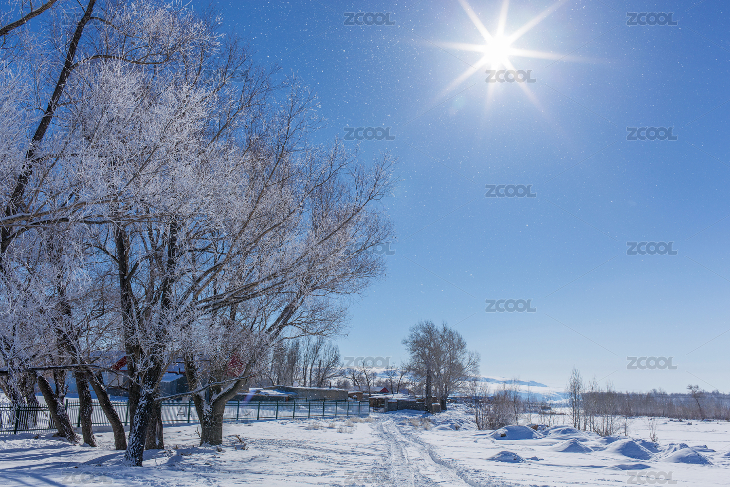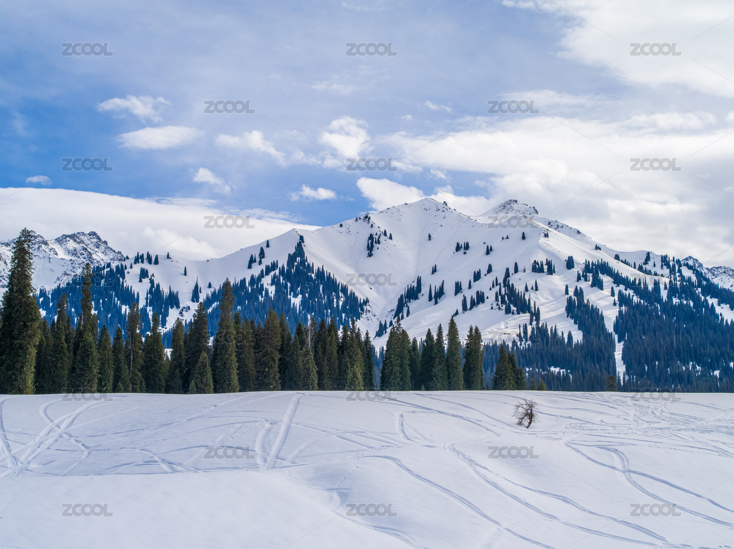 中國新疆伊犁的庫爾德寧景區(qū)的冬季自然風(fēng)光