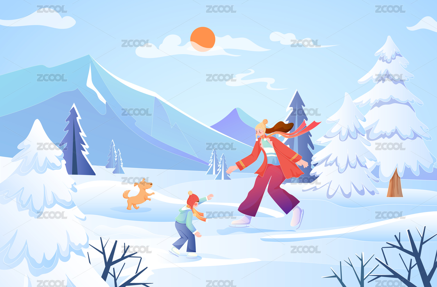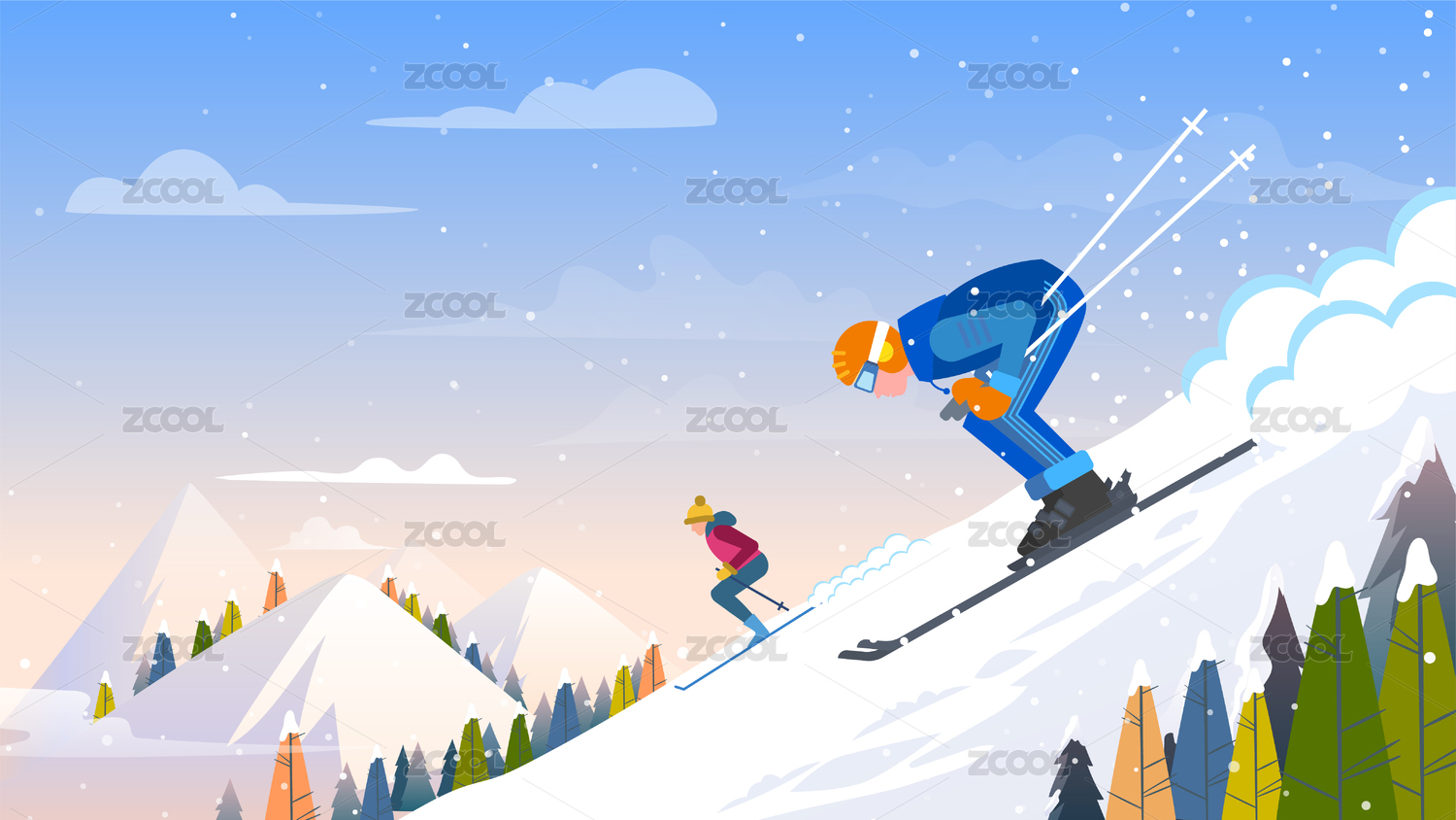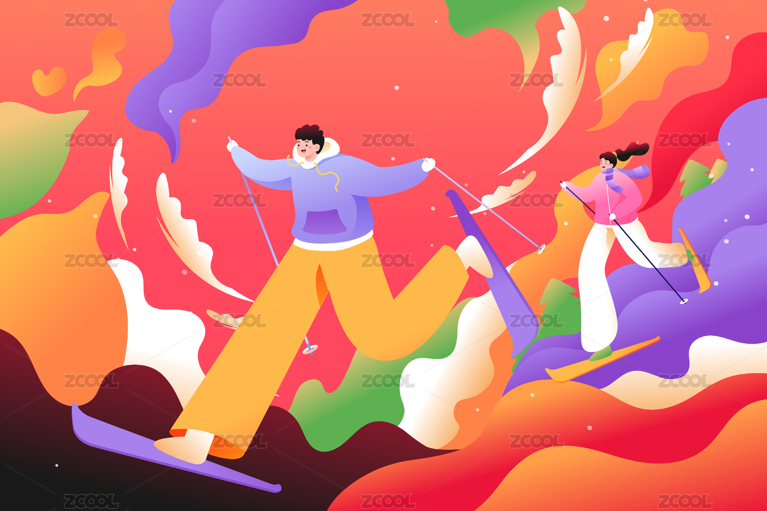 冬季運(yùn)動戶外人物插畫北京冬奧會比賽海報