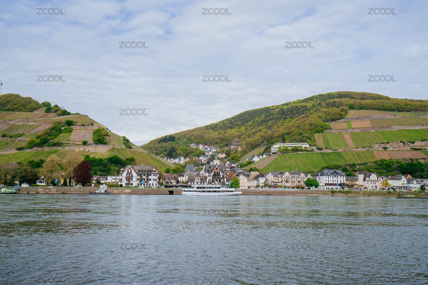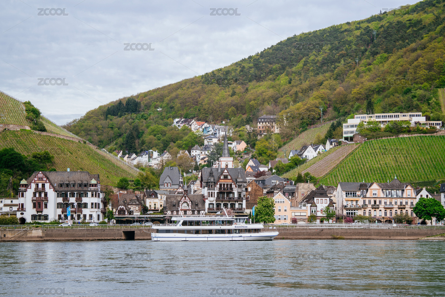 萊茵河的歐洲德國(guó)阿斯曼斯豪森小鎮(zhèn)