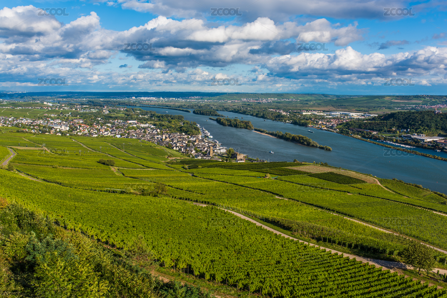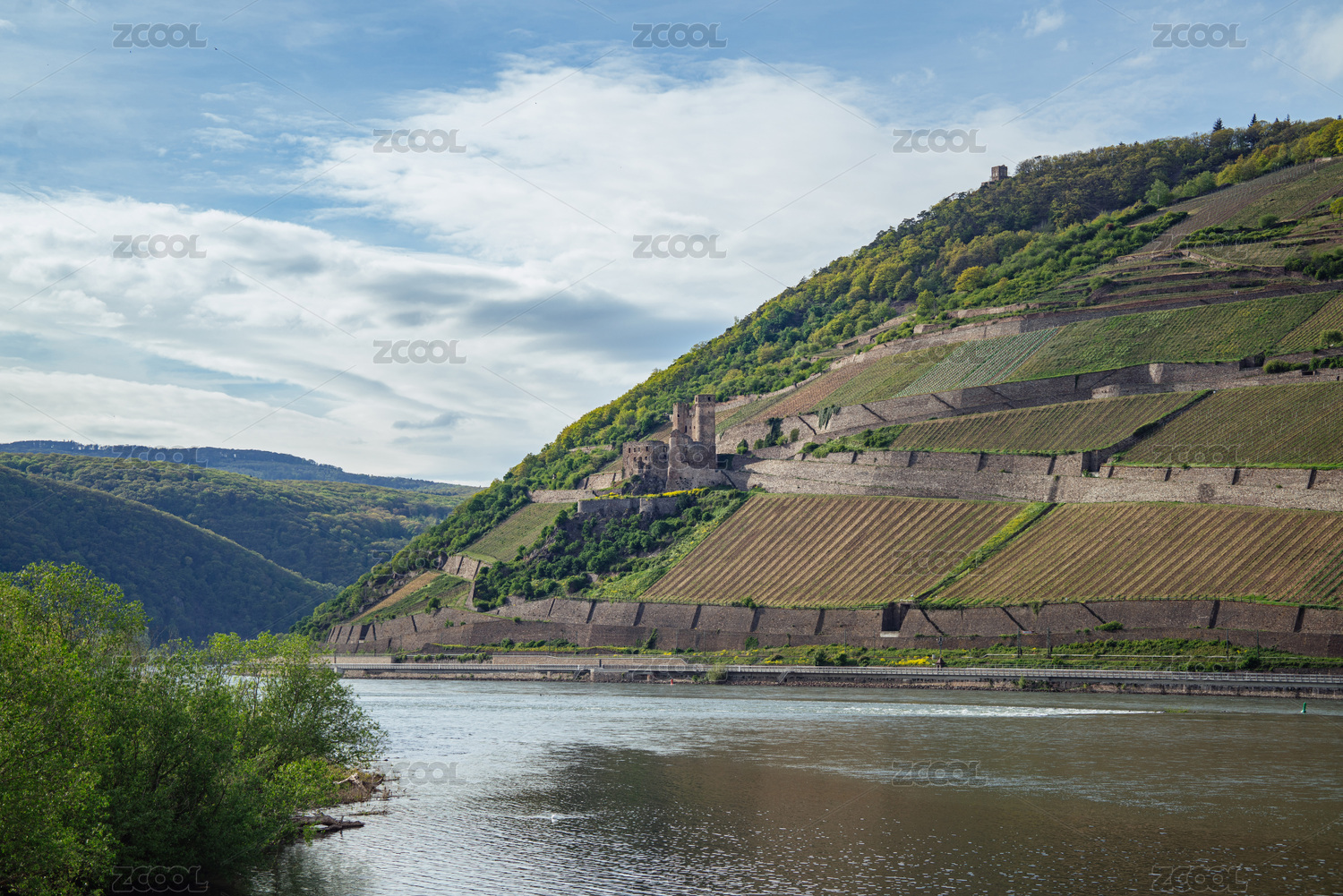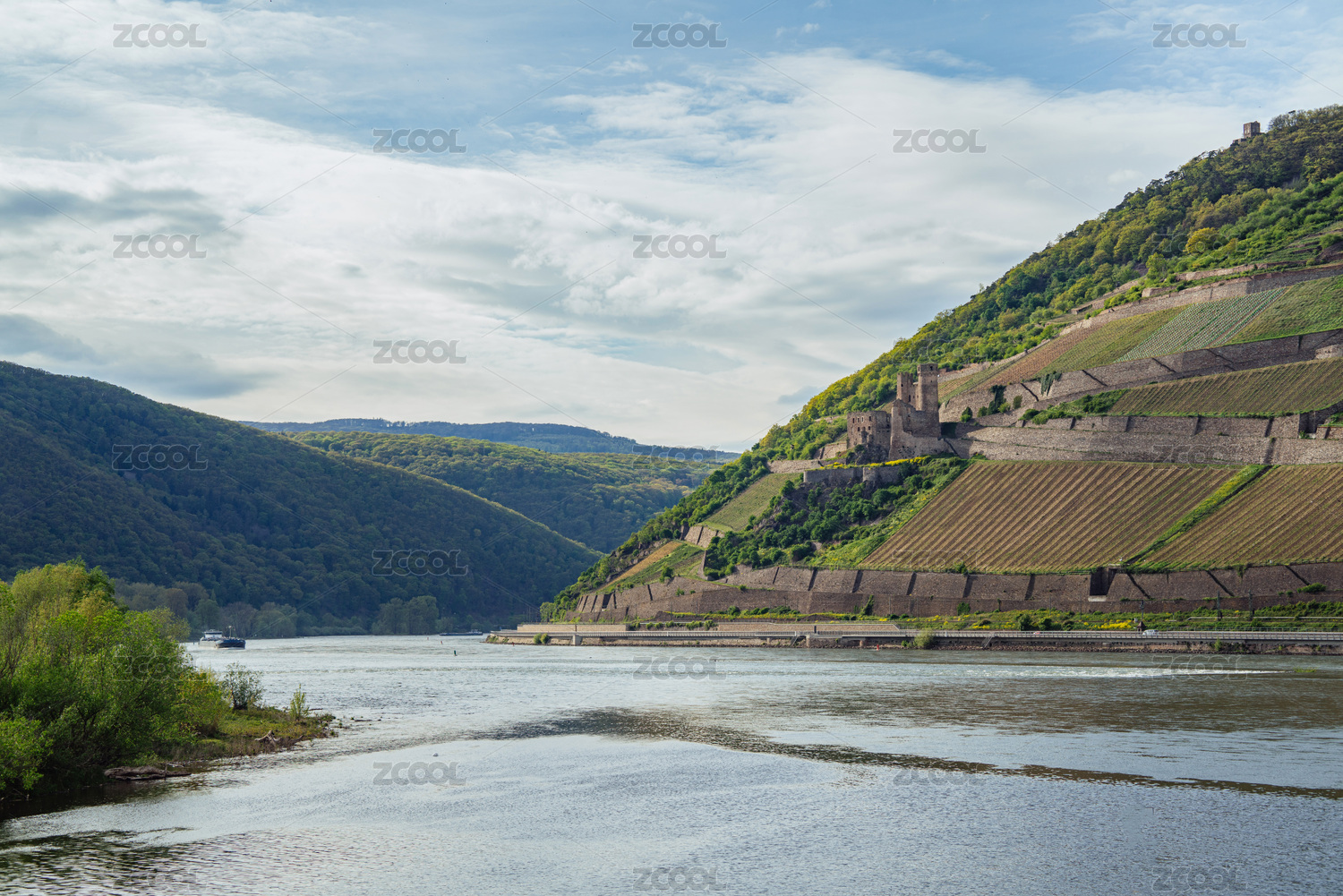 廣闊的萊茵河,兩岸高山上坐落著古老的城堡