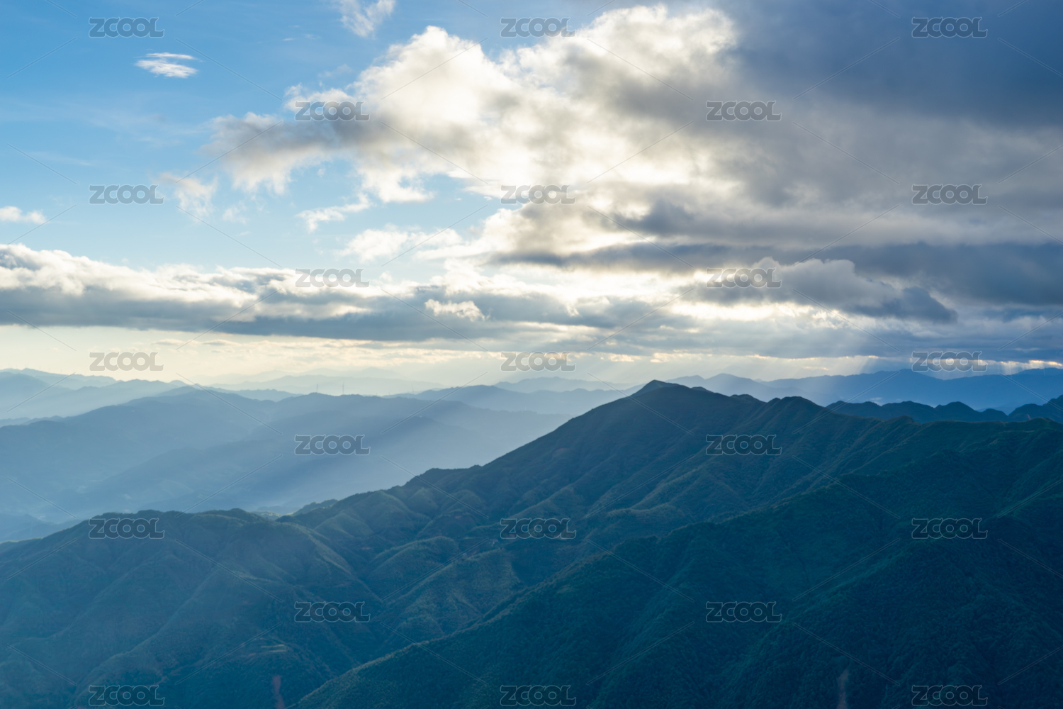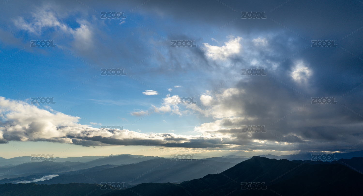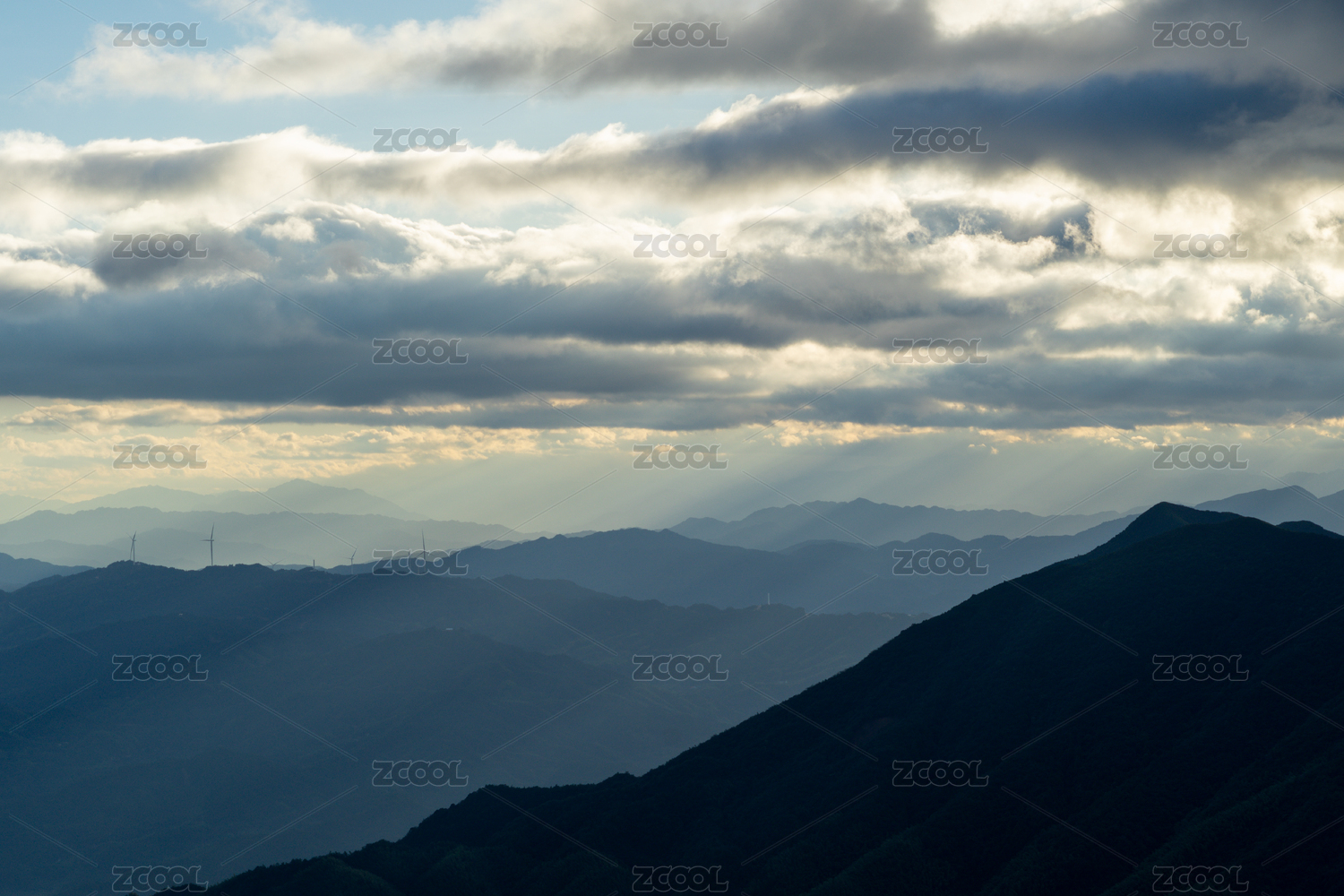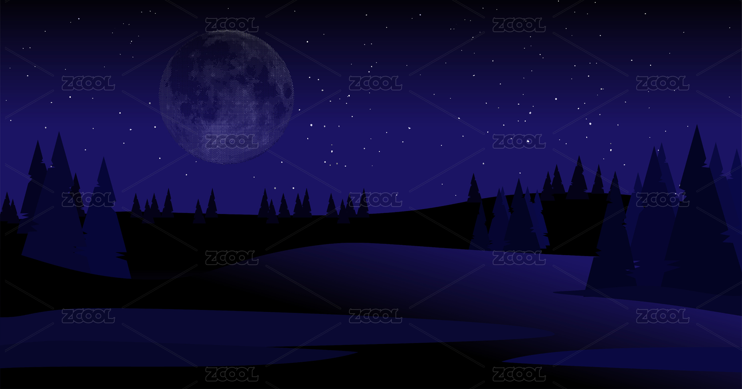 清晨或傍晚的天空,帶小樹林的山丘矢量背景
