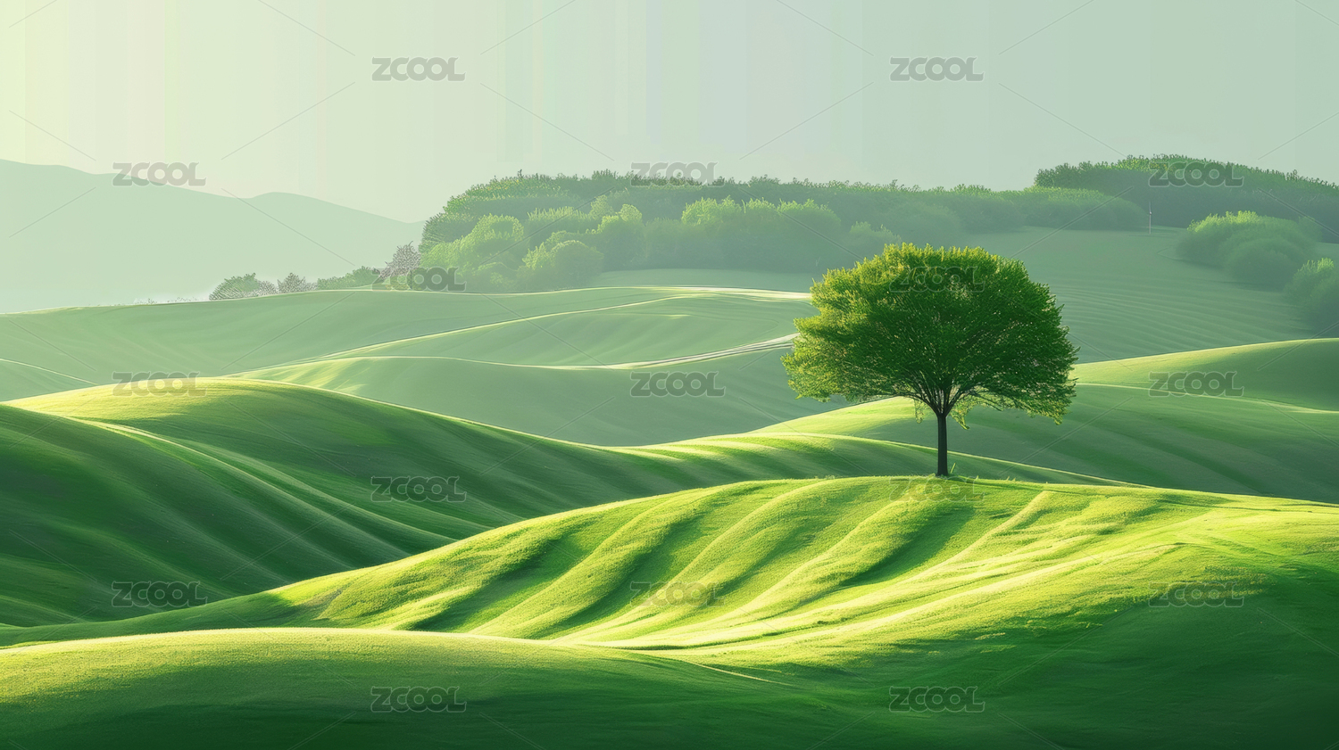 綠色草坪山丘和樹木,自然創(chuàng)意插畫背景