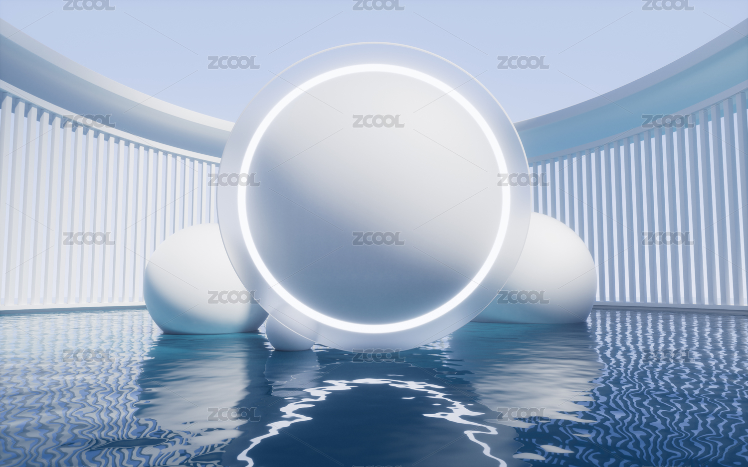 白色球體與水面3D渲染